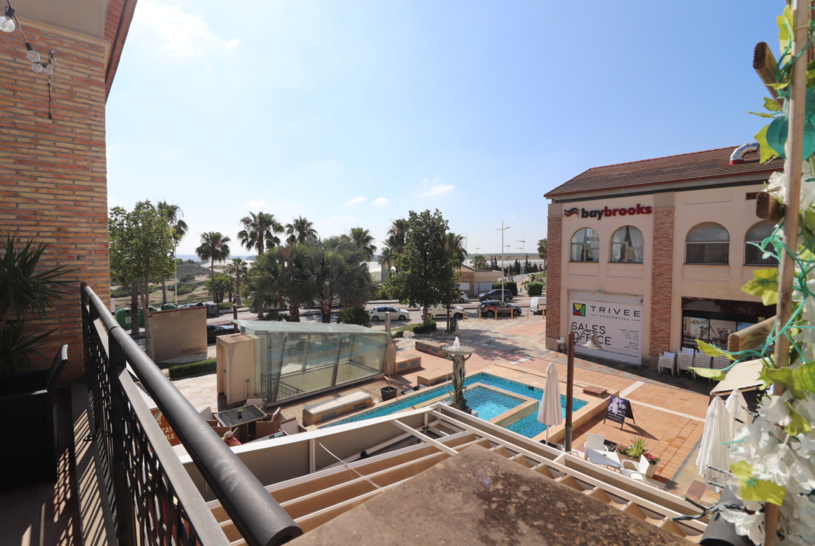East Facing, Empty Unit in La Finca Golf Resort, Algorfa. Situated on the first floor of this well established commercial centre. Comprising inside of an open area on the ground floor with what could be a fitted bar; bathroom; shower room; additional room for storage or potential small kitchen; on the first floor is the mezzanine level, benefiting from two storerooms + an open area. To the front of a unit is a private use terrace of some 15m2, ideal for outdoor seating or an external waiting area. This unit has the potential to be a bar, restaurant, office, shop, salon or anything you can put your mind too. Also available for as a freehold purchase for €130.000!
