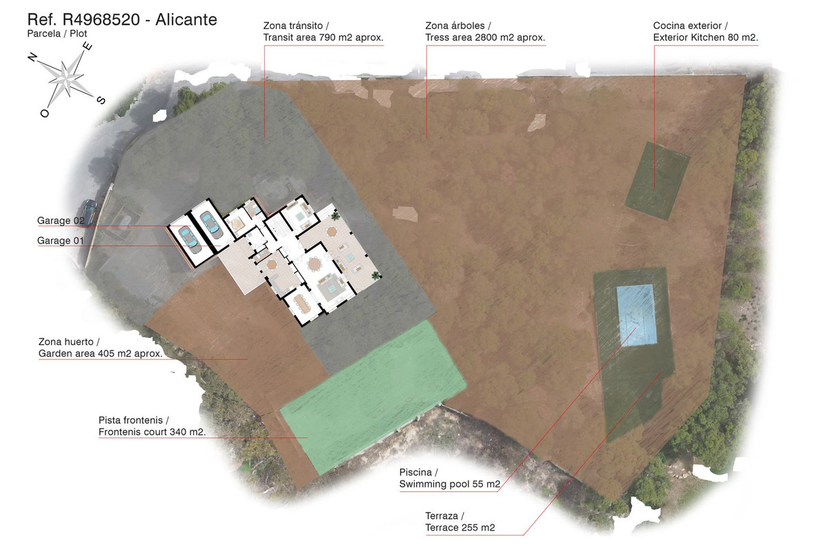 The villa itself spans 425 m² and sits on a flat plot more than 12 times its size (5,273 m²). Its prime location on Alicante’s doorstep, combined with its expansive grounds, private pool, tennis/pelota court, and exclusive gated community, make this property a truly unique offering.