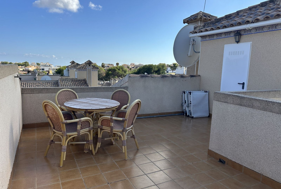 ✨ Key features:u000b???? 3 spacious bedroomsu000b???? 2 modern bathroomsu000b???? Large terrace on the ground floor with 1 bedroom and 1 bathroomu000b???? Upstairs: 2 bedrooms, 1 bathroom, terrace and private solariumu000b???? Private Jacuzzi for moments of absolute relaxationu000b???? Communal swimming pool in the residenceu000b???? Air conditioning in each bedroom and in the main roomu000b???? Sold furnished – ready to move into!u000b???? Close to all amenities, within walking distance (supermarkets, restaurants, bars, golf…)u000b???? Just 10 minutes from the sea and 45 minutes from Alicante ✈️ airport