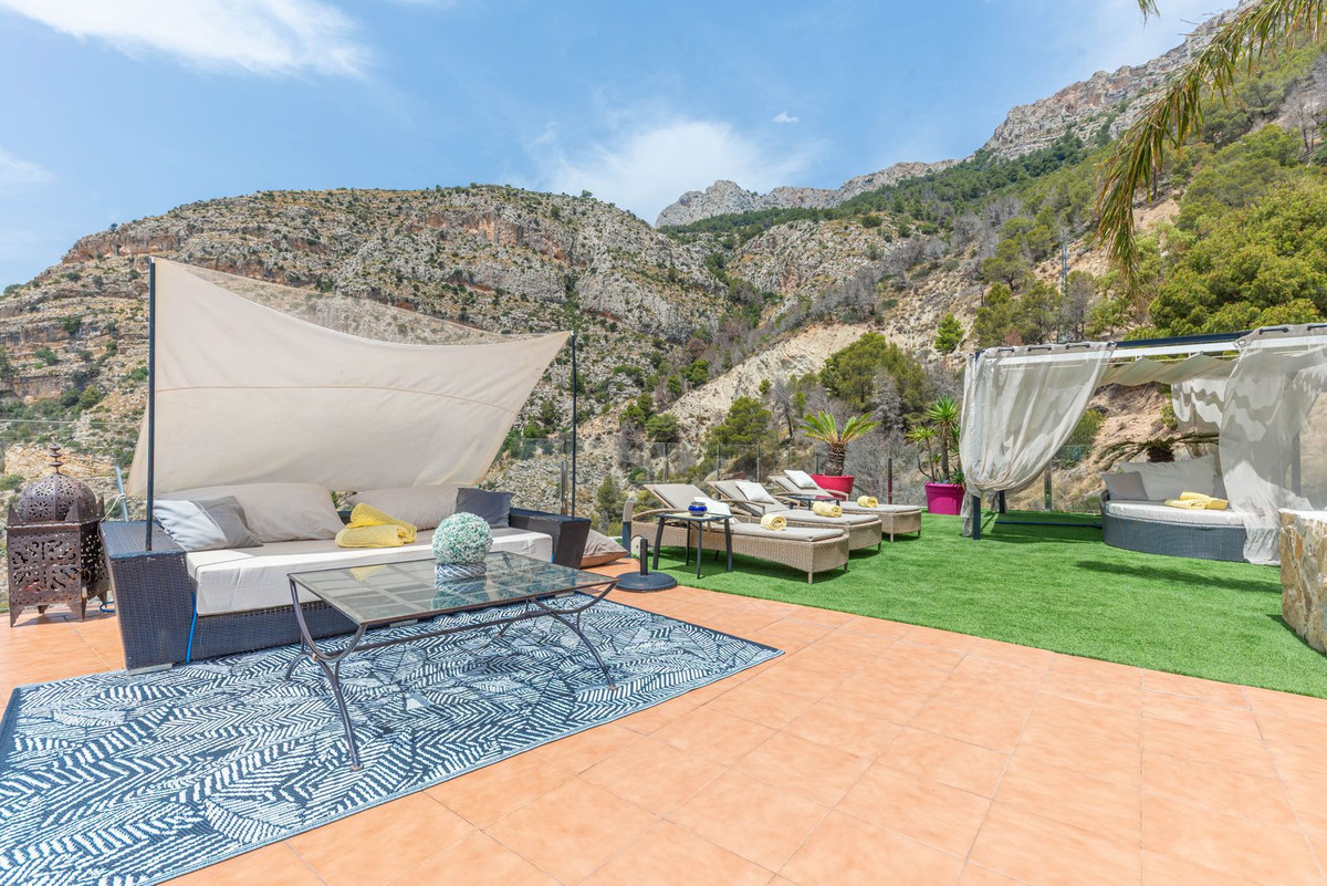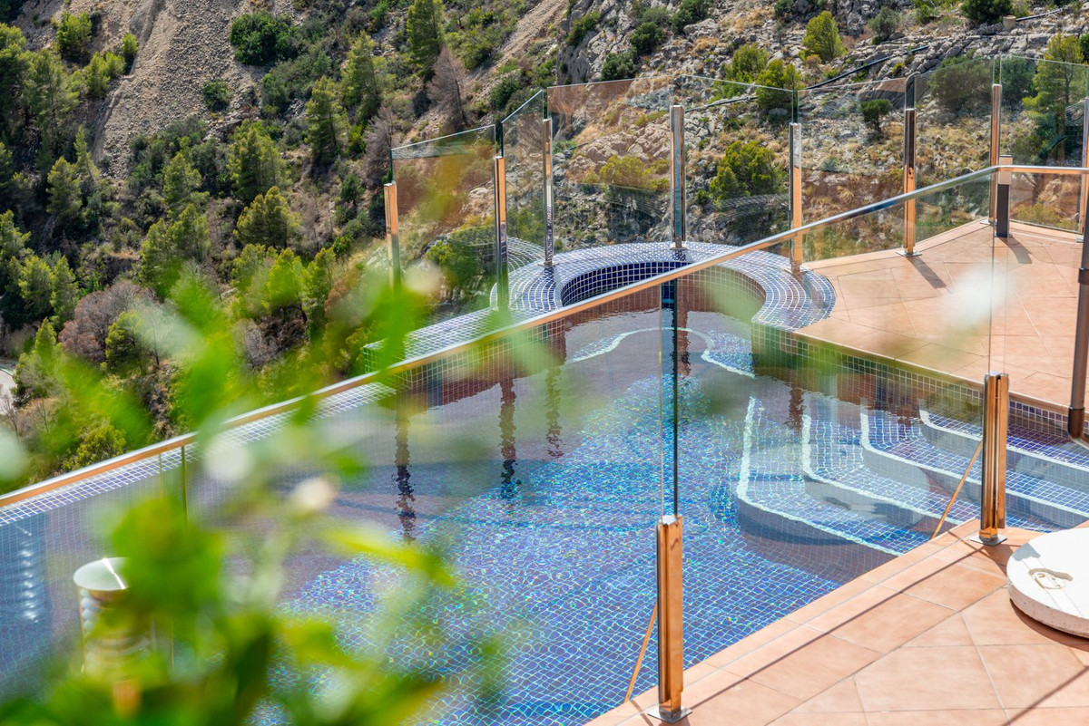 From its heated infinity pool, you can enjoy an unparalleled panoramic view of the Bay of Altea, the Mediterranean Sea, and the surrounding majestic mountains. The property is also surrounded by a well-maintained garden with shaded areas, ideal for relaxing and enjoying the peaceful setting.
