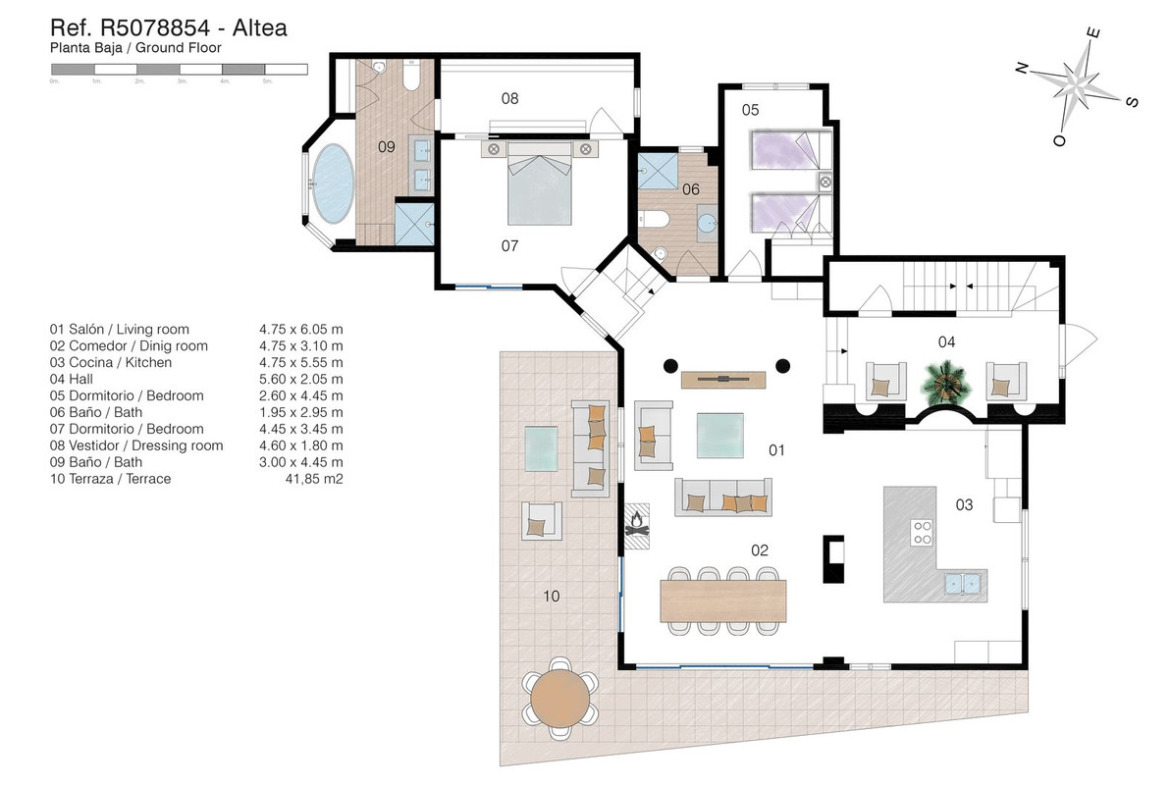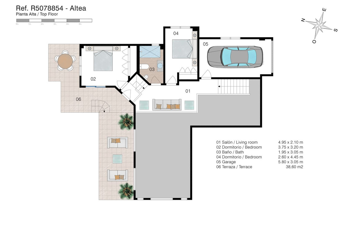 Located in the most exclusive residential area of the Costa Blanca, this villa sits on an elevated plot with private access and 24-hour security. Entry to the property is via a sliding automatic gate, leading to a parking area at the same level as the main entrance of the house.