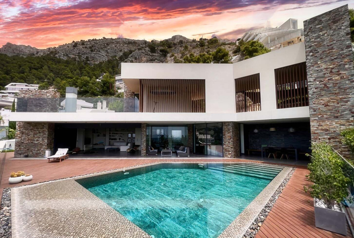 We present a sophisticated contemporary villa in the exclusive community of Altea Hills, with 24/7 surveillance to guarantee the safety of its residents. This elegant property stands out for its spacious architecture and innovative interior design, which adopts a philosophy of open spaces, clean lines and harmony with nature.