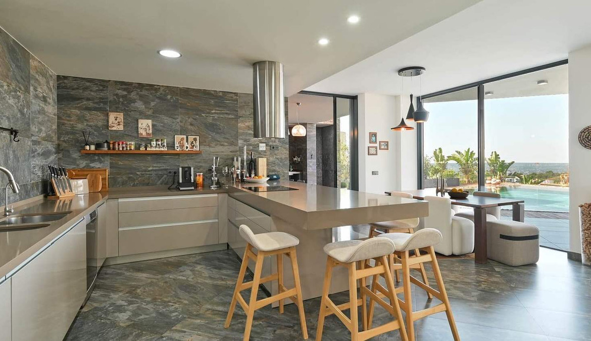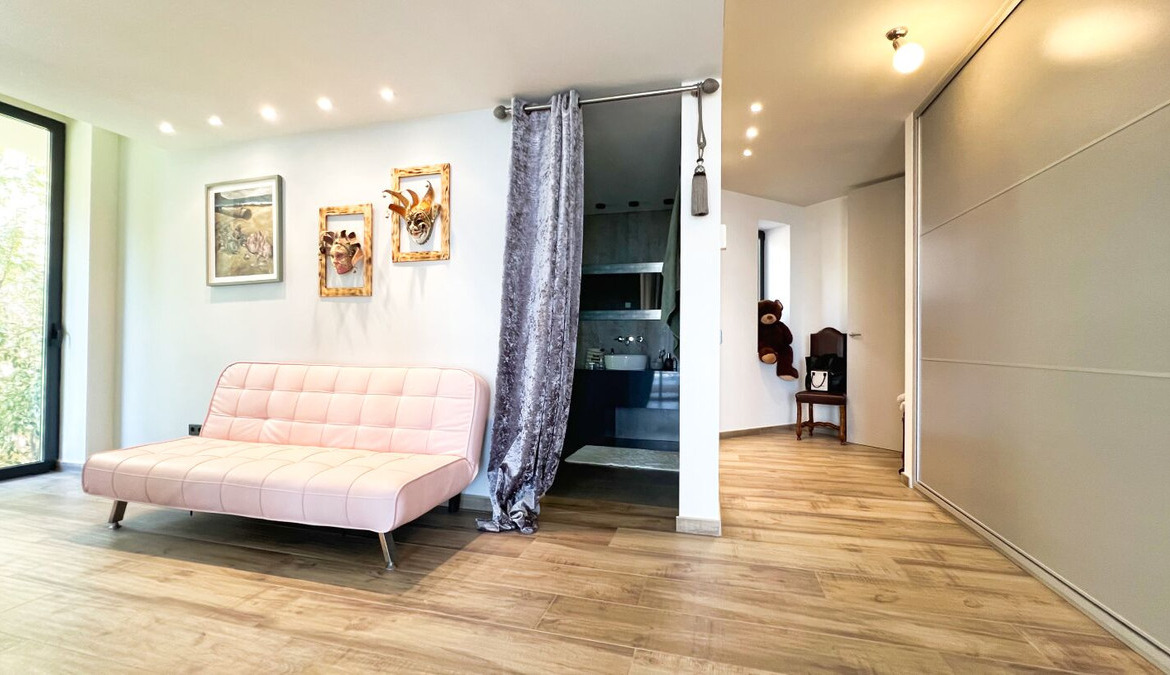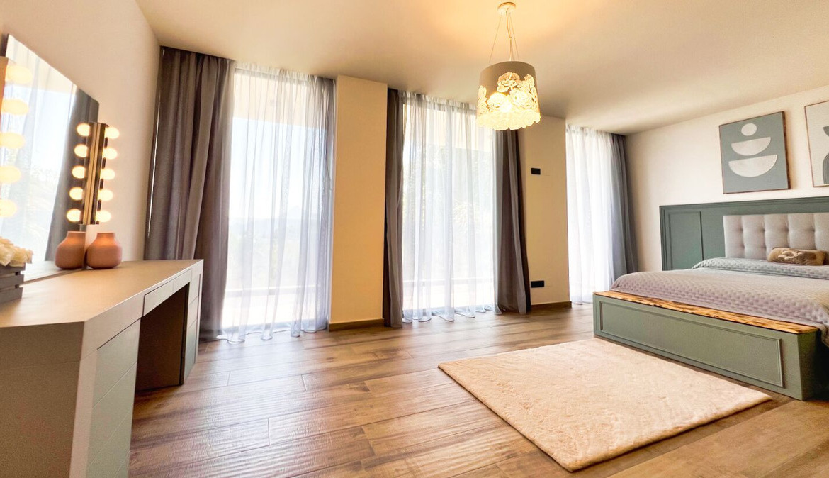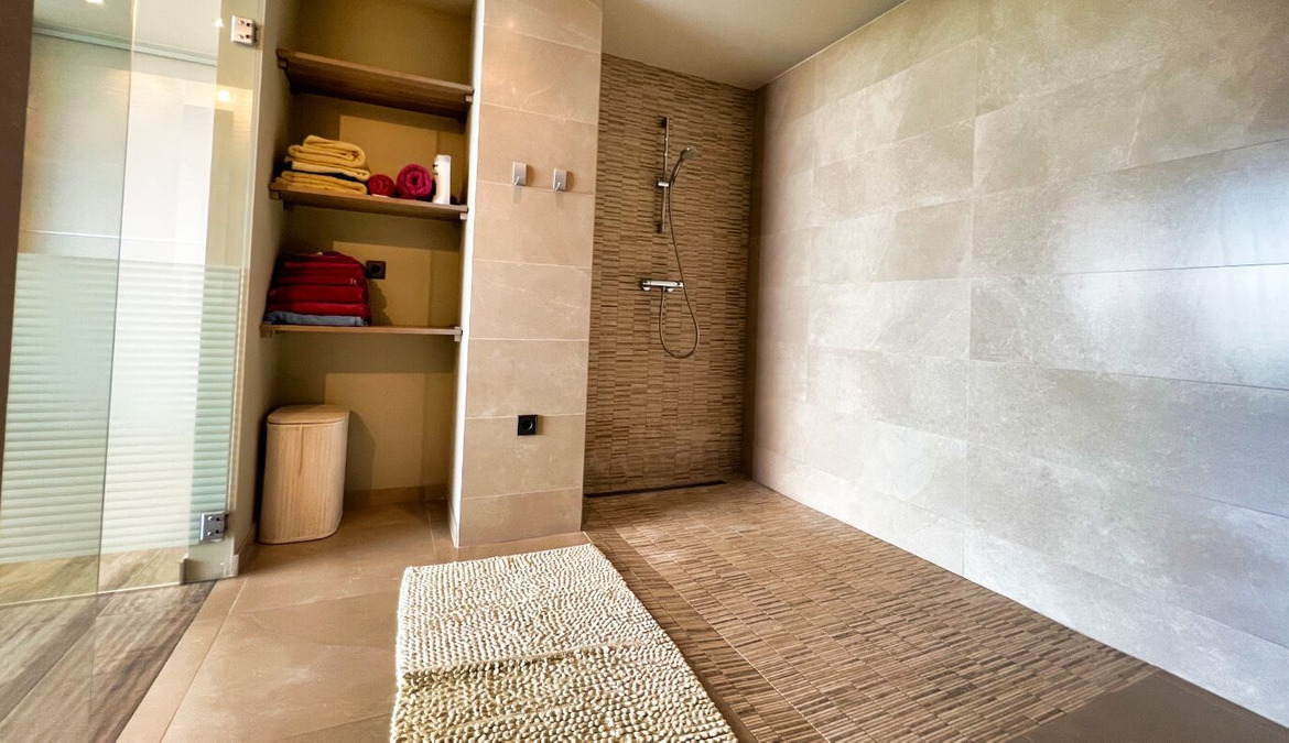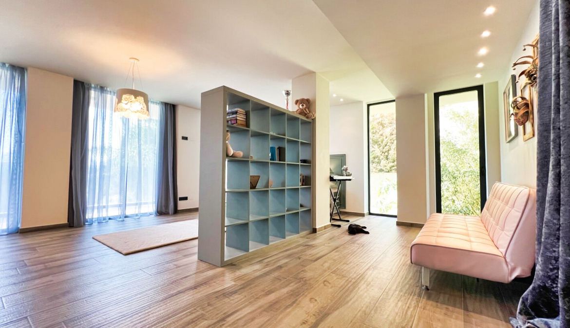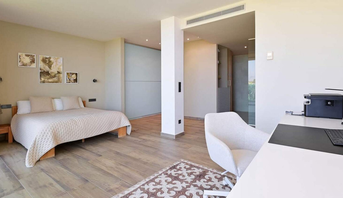 The villa has three spacious bedrooms, each with its own private bathroom, designed to guarantee comfort and style. In addition, there is the possibility of transforming an additional space into a fourth bedroom, adapting the property to your specific needs. All bedrooms are equipped with built-in wardrobes and large bathrooms, ideal for customising the spaces according to your preferences.
