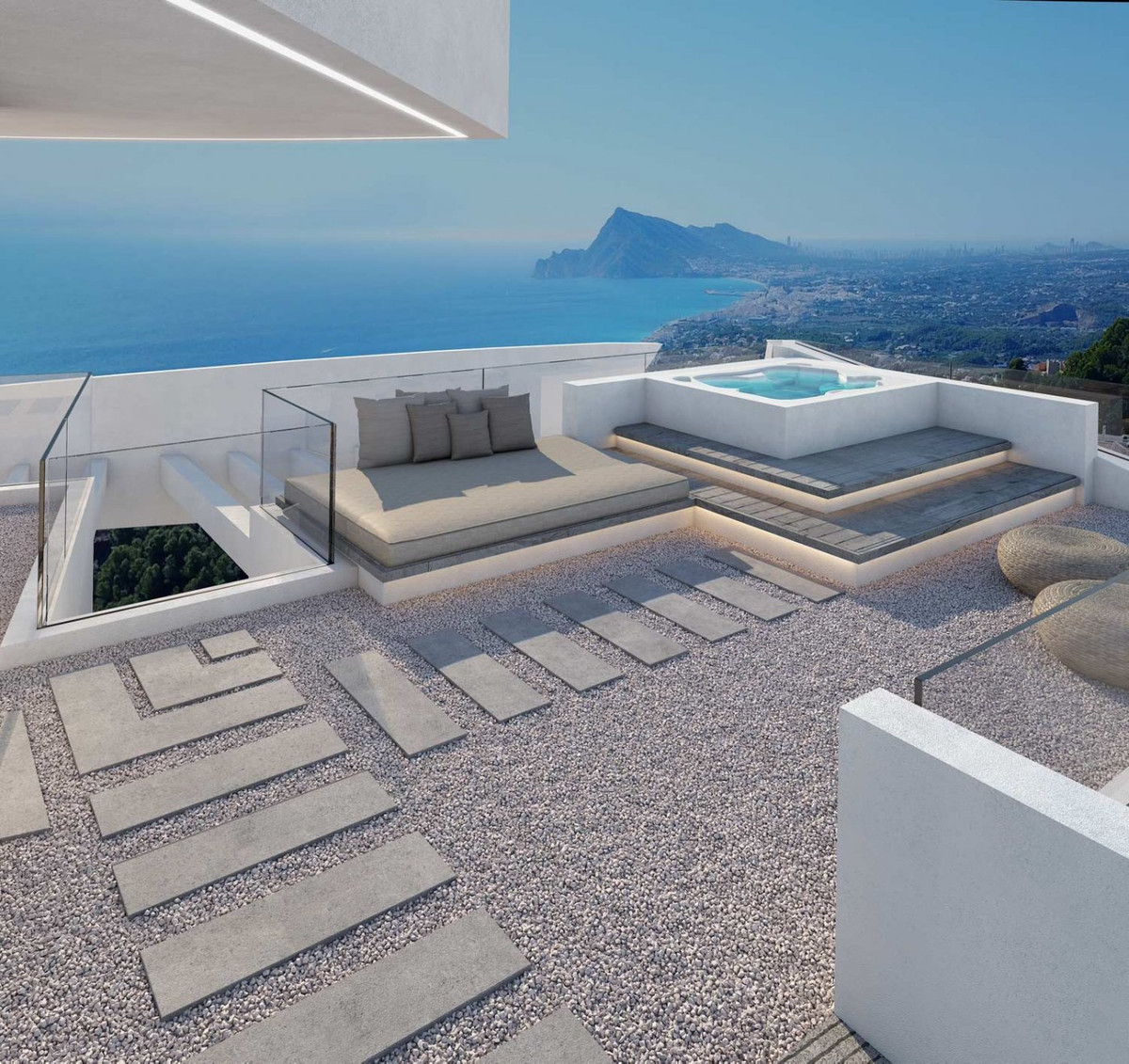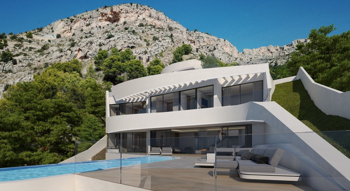 Luxury villa for sale in Altea Hills with incredible sea views. The total area of the villa is 413 m2, the land area is 979 m2. The house has four bedrooms, four bathrooms, central air conditioning, which works for heating and cooling, heated floors, a fully equipped kitchen, a designer garden, a large private pool, a terrace, a recreation area, two parking spaces, lighting of the territory. The villa is built to the highest standards of quality and taste. One of its main advantages is a breathtaking sea view. The villa is located in Altea Hills – one of the most desirable places to live on the Costa Blanca, where the entire infrastructure satisfies even the most discerning client.