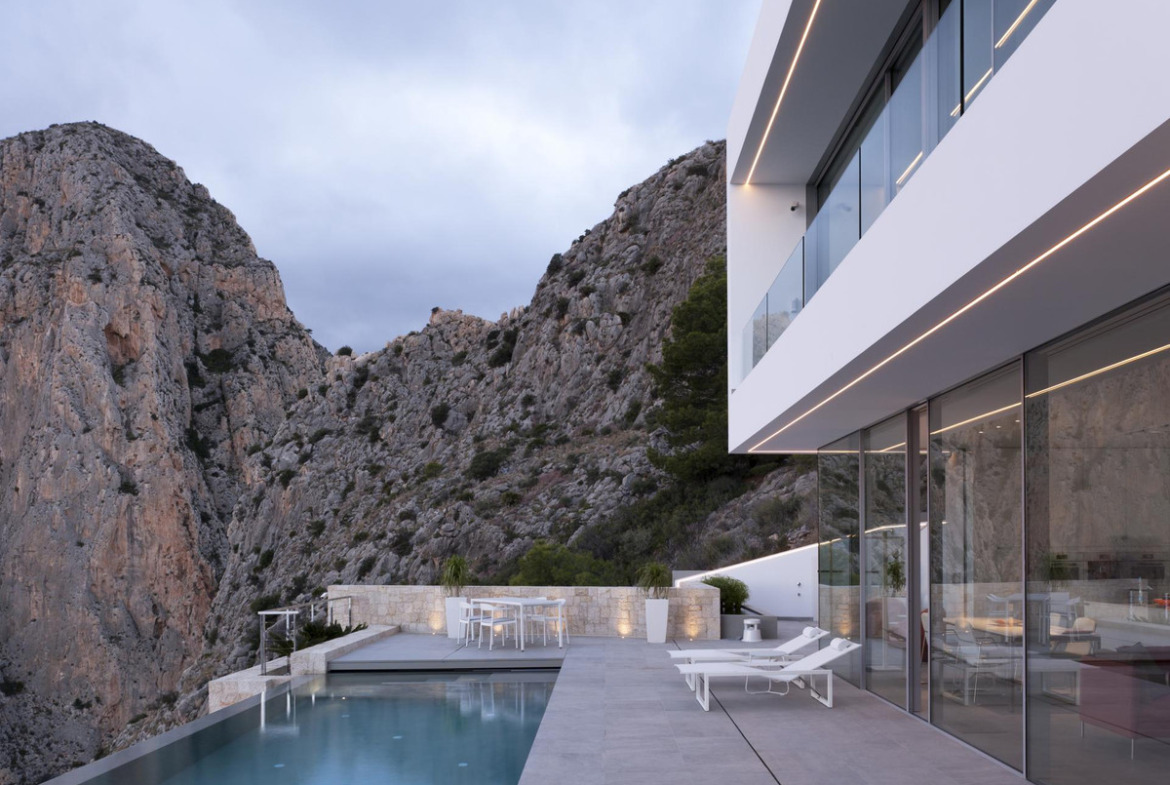 The villa is 1.2 km from the beach, 6 km from the village of Altea la Vella, 71 km from Alicante airport and with easy access by road, both via the A7 motorway and national road N-332.