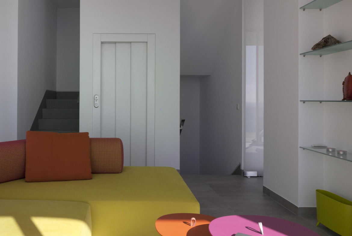 The house is entered through the garage with stunning views where there is also the lift connected to all levels of the house. The garage is equipped with large storage cupboards.