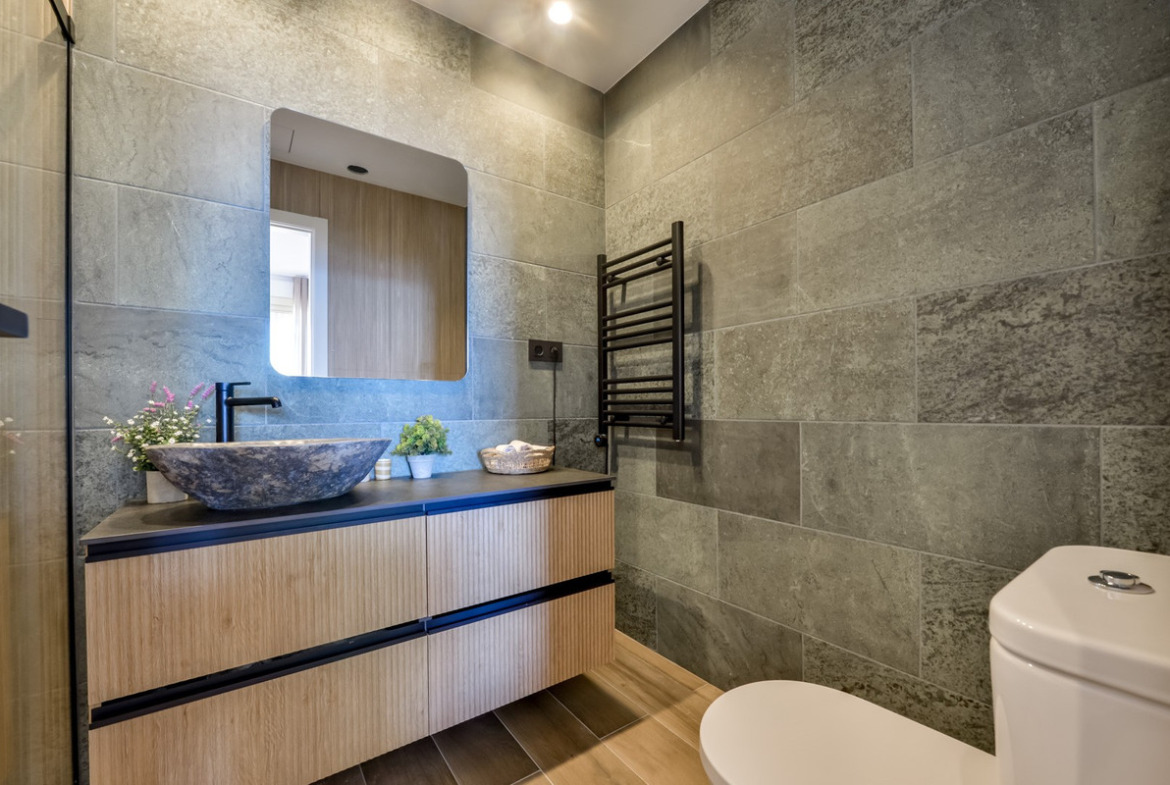 On the main floor, a spacious and bright living-dining area opens to the exterior through large panoramic windows, allowing you to enjoy the sea from almost every corner. The fully equipped designer kitchen integrates seamlessly into the space. This level also features three bedrooms and two bathrooms, one of them en suite, all finished with exceptional attention to detail.