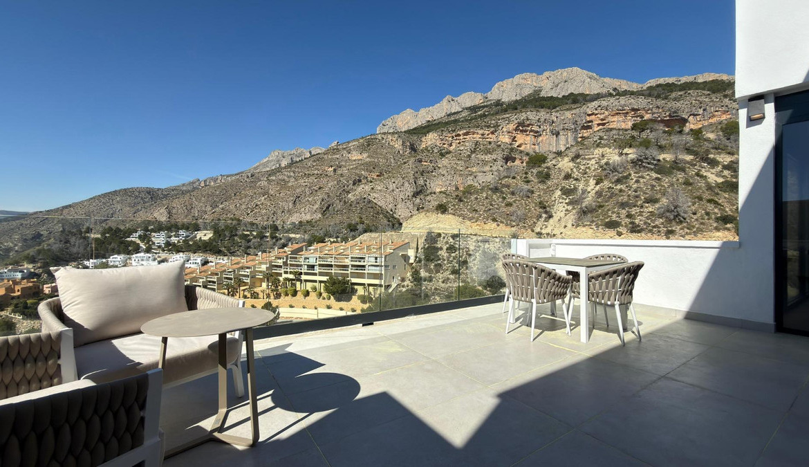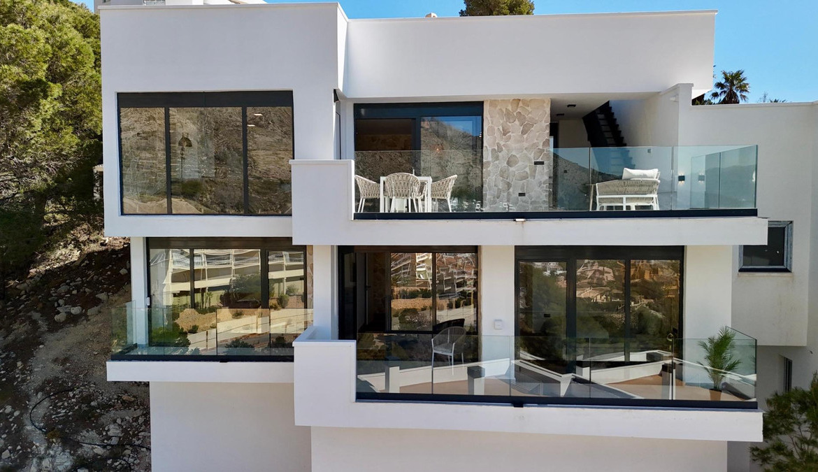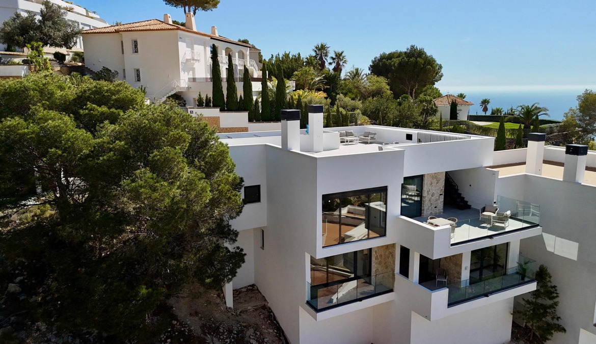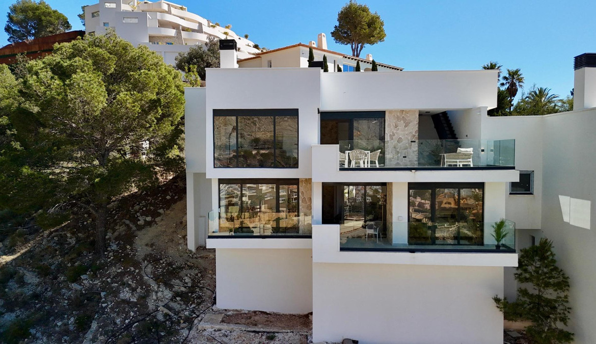 Exclusive villa with private swimming pool located in the prestigious area of Sierra de Altea on the Costa Blanca. A property that perfectly combines contemporary architecture, comfort, energy efficiency and stunning Mediterranean views.Key features: • Built area: 239 sqm • Living area: 191 sqm • Plot: 409 sqm • 3 bedrooms • 3 bathrooms • Private pool • Spacious terraces and solarium • Private garage / parkingBright open-plan living and dining area with modern kitchen and direct access to the terrace.Equipped with smart home system, security alarm, solar panels, central air conditioning and heating, and double-glazed windows for optimal insulation.Close to the sea, golf courses, marinas and the historic center of Altea.Ideal for permanent living, holiday home or high-yield investment.