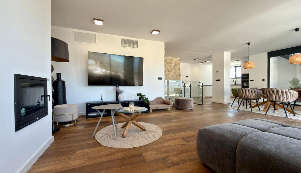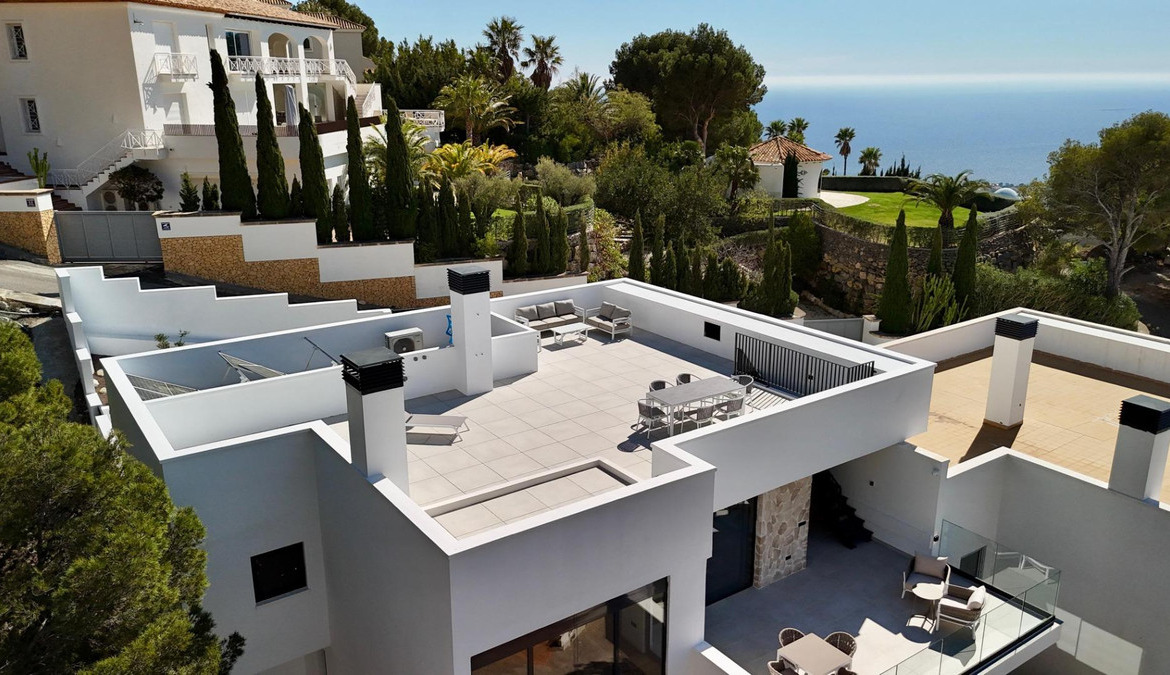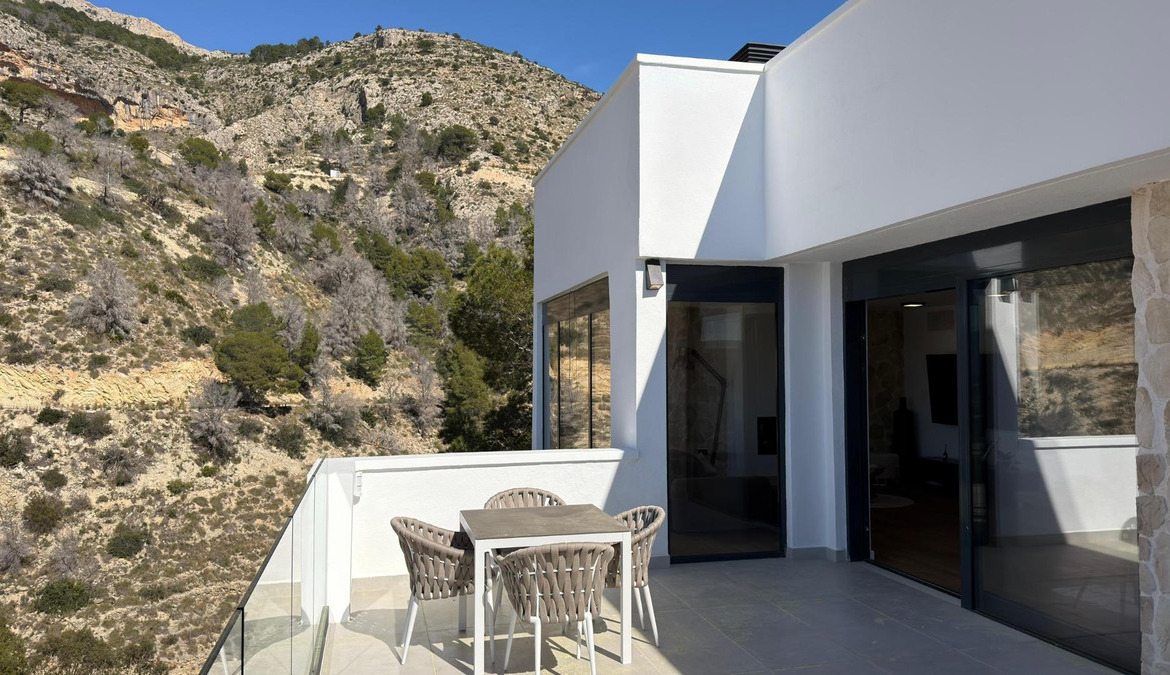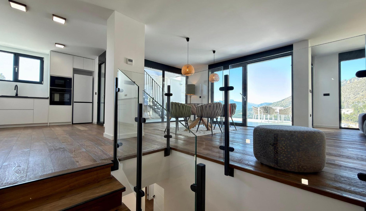 Exclusive villa with private swimming pool located in the prestigious area of Sierra de Altea on the Costa Blanca. A property that perfectly combines contemporary architecture, comfort, energy efficiency and stunning Mediterranean views.Key features: • Built area: 239 sqm • Living area: 191 sqm • Plot: 409 sqm • 3 bedrooms • 3 bathrooms • Private pool • Spacious terraces and solarium • Private garage / parkingBright open-plan living and dining area with modern kitchen and direct access to the terrace.Equipped with smart home system, security alarm, solar panels, central air conditioning and heating, and double-glazed windows for optimal insulation.Close to the sea, golf courses, marinas and the historic center of Altea.Ideal for permanent living, holiday home or high-yield investment.