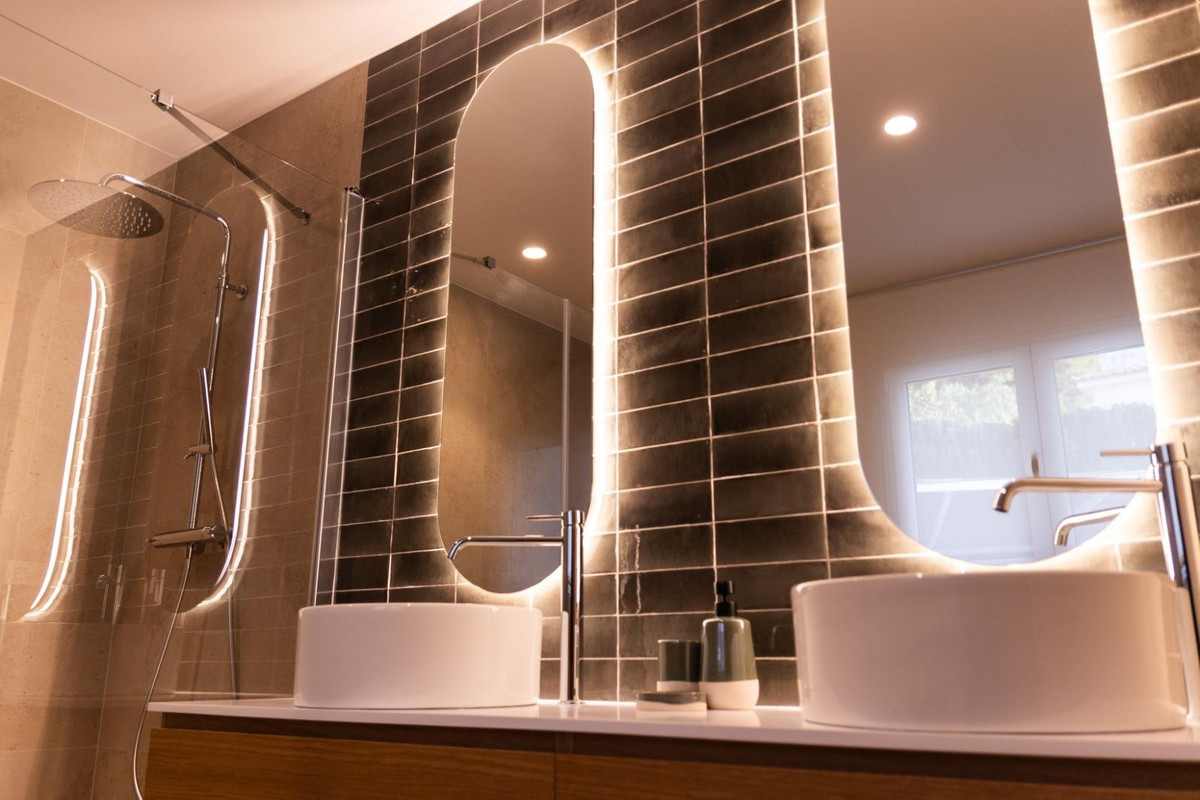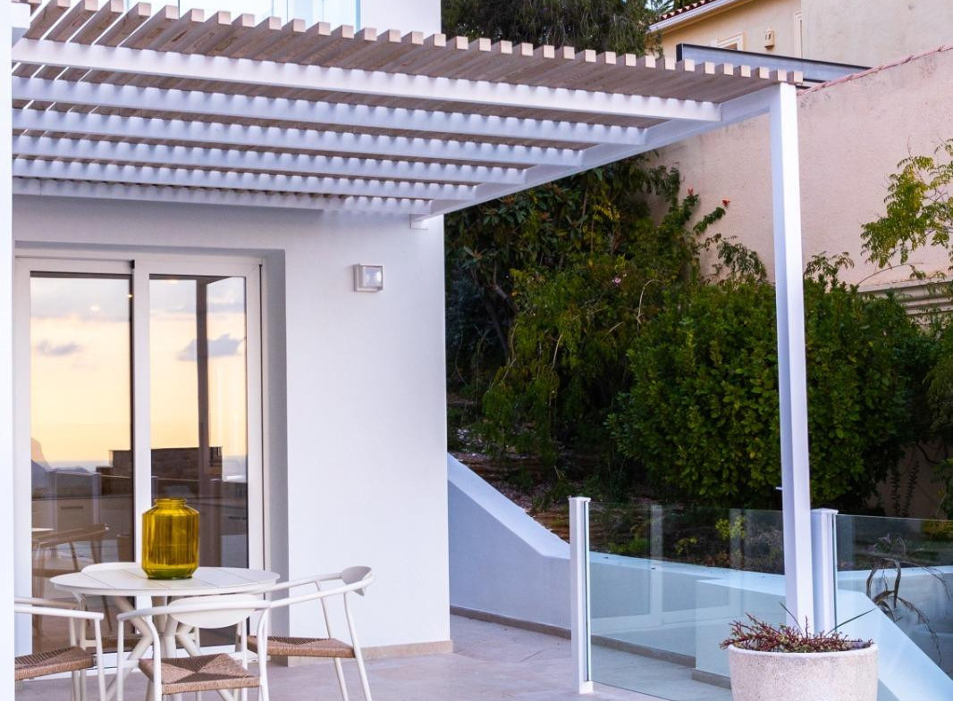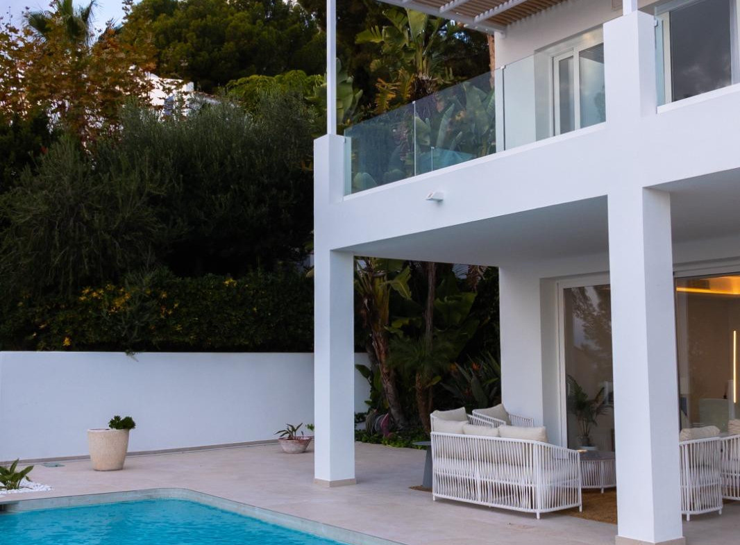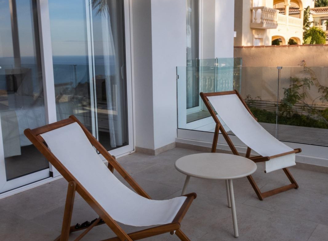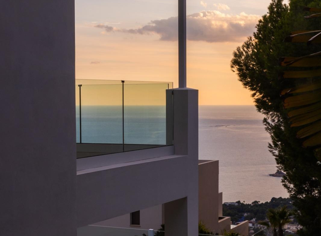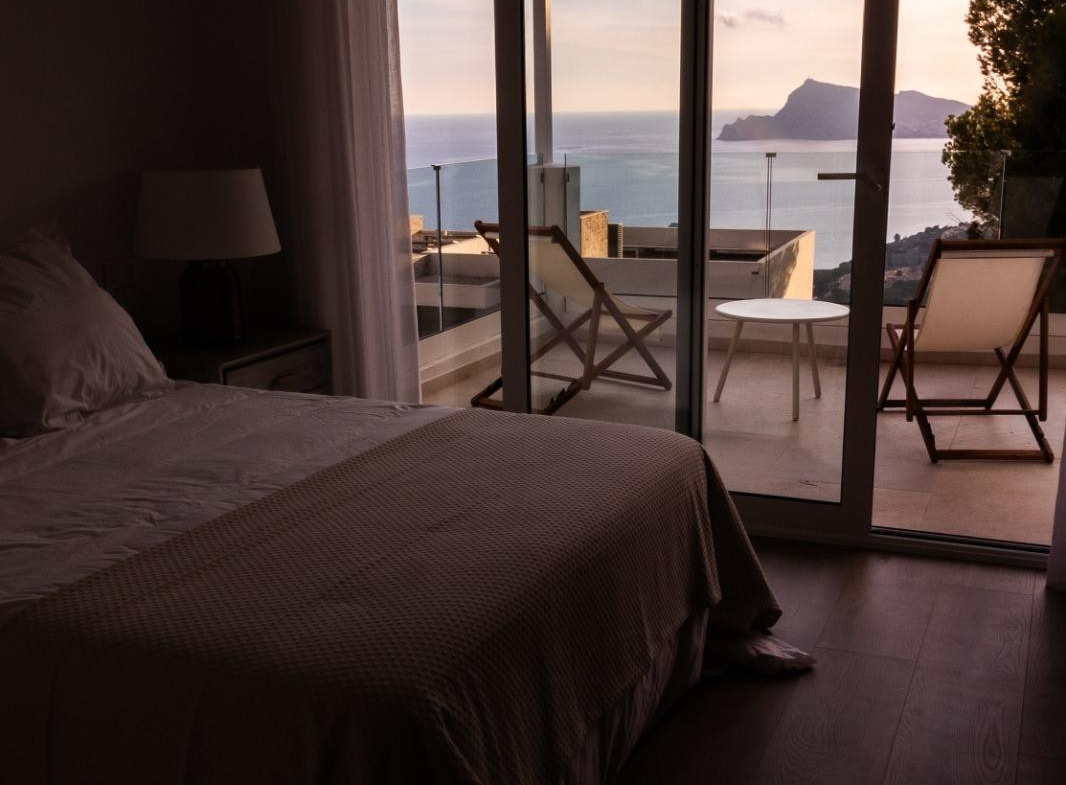 Designed in contemporary Mediterranean style, this property stands out for its clean lines, brightness, and spectacular open sea views.???? Distribution???? Main floor• Spacious and bright living-dining room• Fully equipped kitchen• 1 guest bathroom• Direct access to terrace and pool???? Upper floor• 3 bedrooms with sea views• 1 master suite with terrace• 1 bedroom with en-suite bathroom and balcony• 1 bedroom with access to terrace• 1 additional full bathroom???? Exterior and plot• Private pool (7.5 x 3.5 m)• Spacious terraces• Covered barbecue area• Garden with palm trees, fruit trees, and automatic irrigation• Private parking with pergola• Fenced plot with automatic access✨ Qualities and finishes• Large format porcelain floors• Terraces with non-slip pavement• Mediterranean white finish façade• Exterior aluminum carpentry with double glazing• Electric shutters in bedrooms• Reinforced entrance door• Built-in wardrobes????️ Equipped kitchen• High-quality furniture (DICA brand or similar)• Integrated appliances (AEG brand or similar):• Cooking hob• Oven• Microwave• Dishwasher• Integrated refrigerator???? Bathrooms• 3 full bathrooms + 1 toilet• Wall-hung sanitary ware (Villeroy & Boch)• Non-slip shower trays with screen• Bathroom furniture with porcelain sink• Backlit mirrors❄️ Comfort and efficiency• Aerothermal system• Cold/heat air conditioning by ducts• Underfloor heating throughout the property• Interior and exterior LED lighting• Pre-installation for solar panels???? Prime location• Between sea and mountains• Panoramic sea views• Exclusive natural environment• Excellent orientation and brightness✨ A unique home that combines design, comfort, and natural surroundings in one of the most exclusive areas of the Costa Blanca.