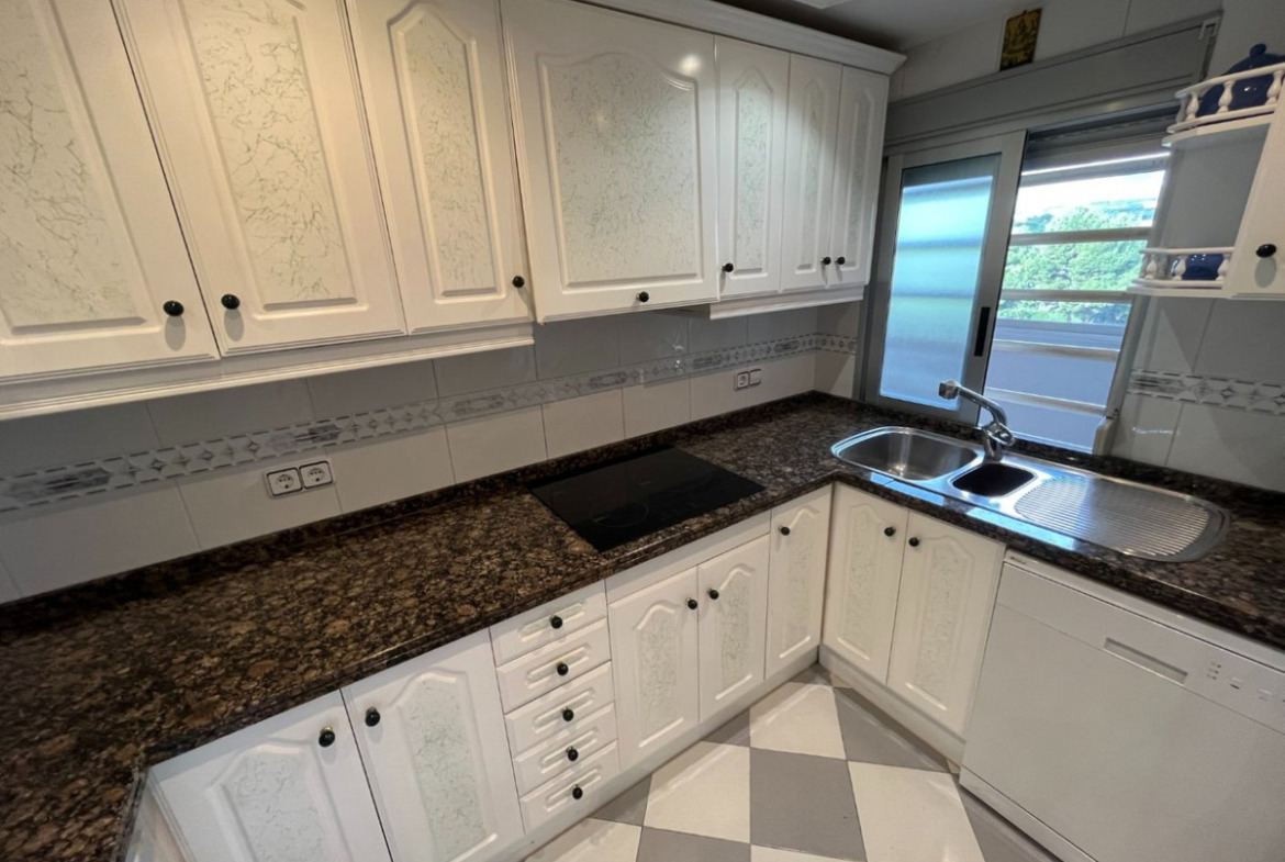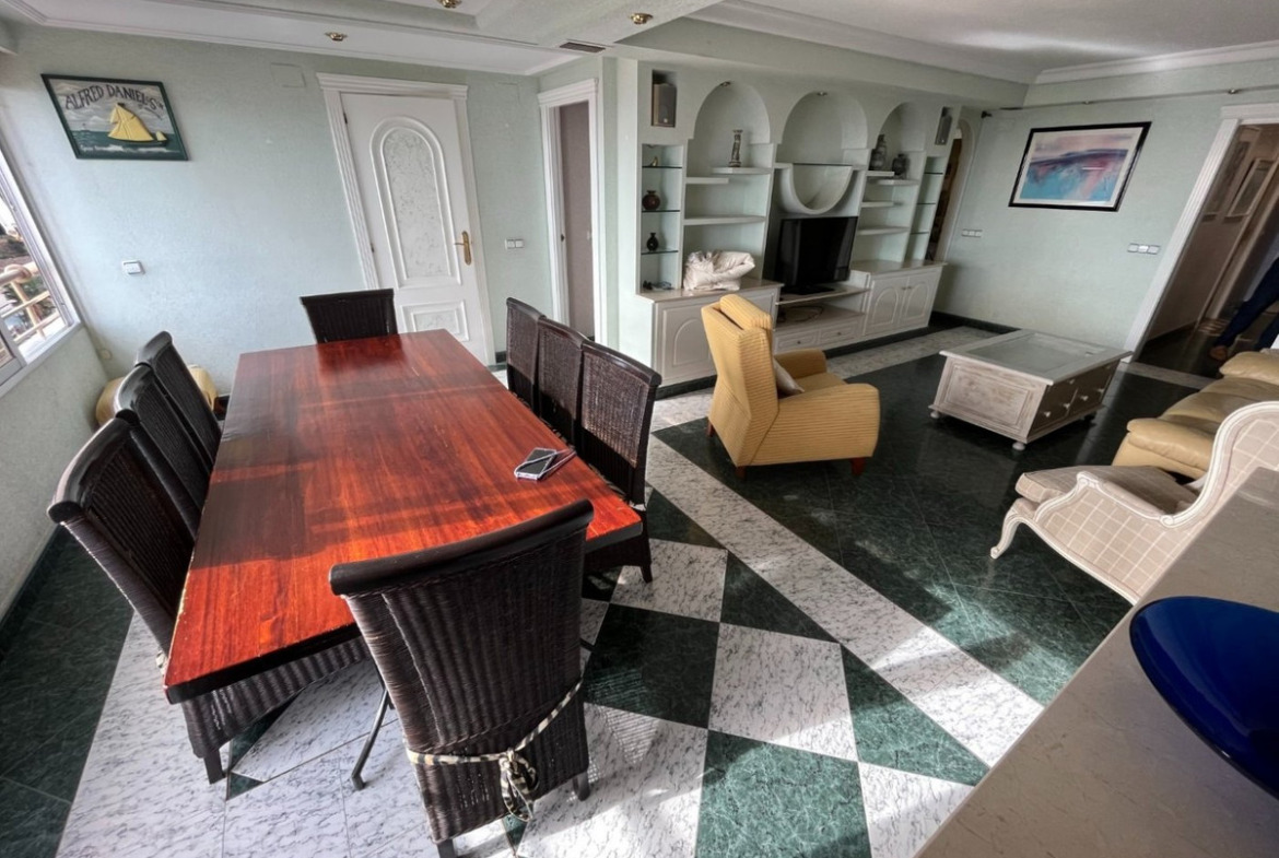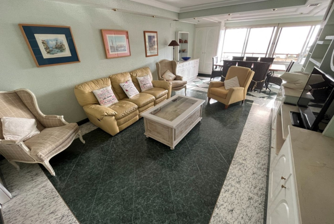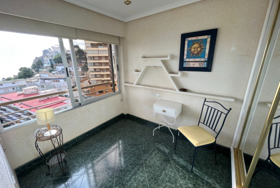 Great Apartment just 80 meters from the Poniente beach in Benidorm, with exceptional views of the sea.It includes 3 bedrooms, 2 bathrooms, a spacious living-dining room and an independent equipped kitchen. It was renovated several years ago, among other things, incorporating the original terrace into the house, but it is still in very good condition.It is built with good materials such as: stoneware floors, white lacquered interior carpentry, kitchen furnished with electrical appliances, built-in wardrobes, hot-cold air conditioning through ducts, etc.Located on the 8th floor of a well-known urbanization of Playa de Poniente, with recently renovated common areas and elevators, two tennis courts, a basketball court, a community pool and freely available covered parking space.Located on Playa de Poniente, at its closest end to La Cala, well connected by road, bus at the door, and surrounded by all kinds of shops and services. With easy access to the AP7 motorway that communicates with the rest of the Costa Blanca.