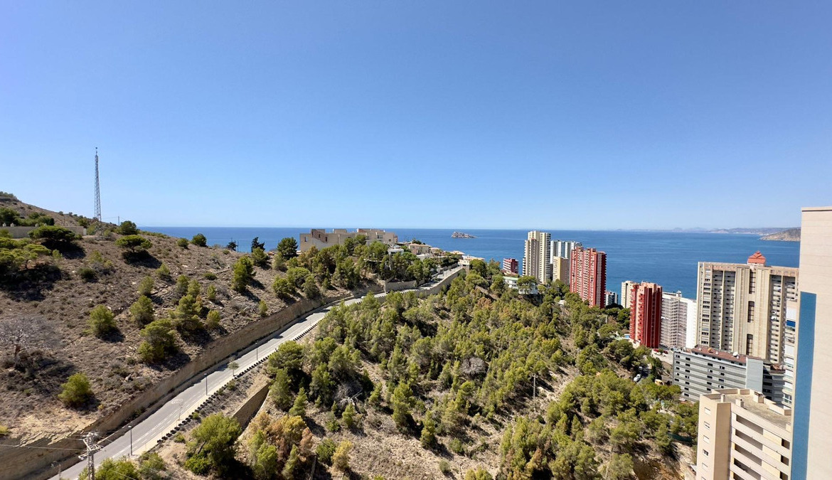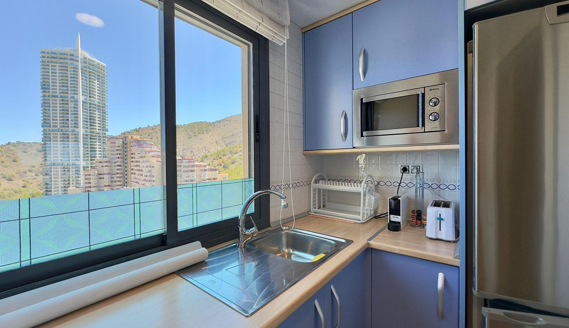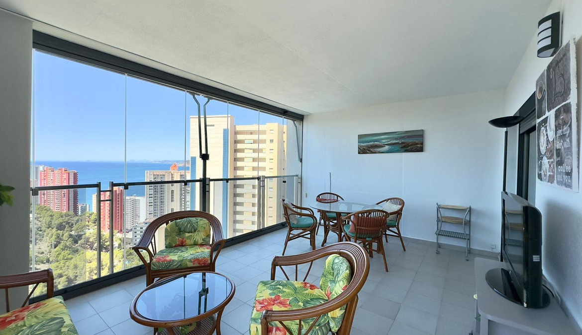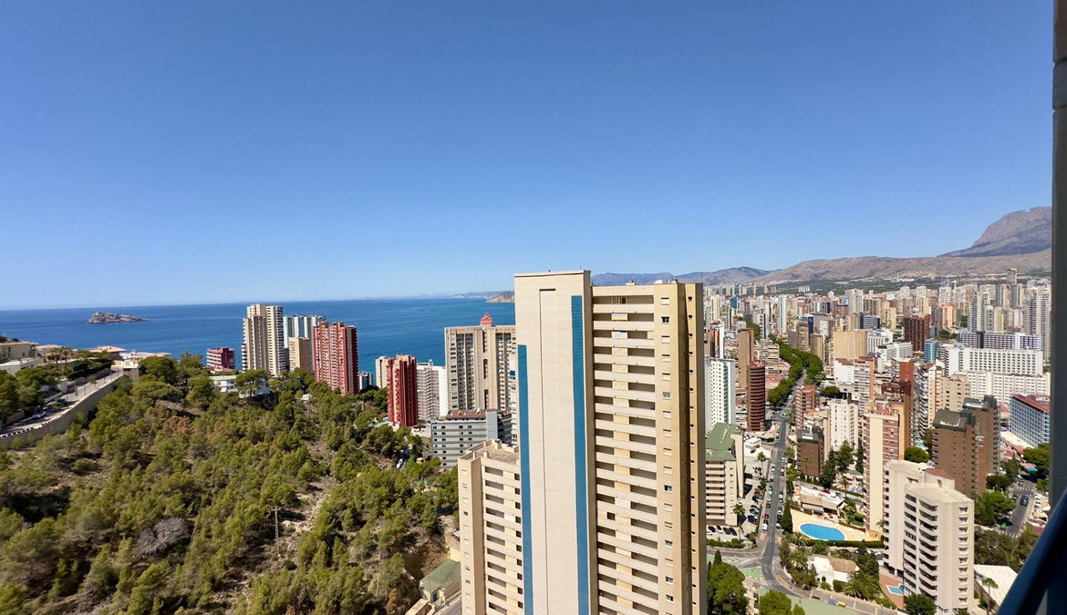 Apartment with sea views with Tourist License in BenidormThis magnificent apartment is located in one of the most emblematic skyscrapers in Benidorm, the "Mirador del Mediterráneo" building. Its privileged location offers unbeatable access to all the amenities and tourist attractions that the famous Benidorm coast has to offer.The apartment has two bedrooms, both spacious and well lit. The rooms are designed to offer maximum comfort, with built-in wardrobes and large windows that allow you to enjoy panoramic views.A spacious and cozy living room, ideal for moments of relaxation and entertainment. This space is tastefully decorated and offers a warm and comfortable atmosphere. The kitchen is independent and is fully equipped with modern appliances. Its functional design makes daily tasks easier and allows you to prepare delicious meals with ease.A complete bathroom, elegantly decorated, that includes all the necessary comforts for everyday life.A large terrace with spectacular views of the Mediterranean Sea. This space is perfect for enjoying outdoor breakfasts, sunset dinners or simply relaxing while taking in the seascape.The convenience of having a parking space in the same building is included in the price, offering security and ease of access.Urbanization:The urbanization offers complete infrastructure and is immersed in the vibrant tourist life of Benidorm. Here you will find:Well-maintained recreational areas including swimming pools, gardens and rest areas.24/7 security system to guarantee the peace of mind of all residents.Within walking distance of supermarkets, restaurants, shops and leisure centers.Around:The location of the apartment is ideal for lovers of nature and active tourism. The area is surrounded by hiking trails and hidden beaches that invite exploration. You can enjoy walks along the coast, discover hidden coves and practice water sports.This apartment not only offers an excellent investment opportunity due to its tourist license, but also promises an exceptional quality of life in one of the most sought-after destinations on the Costa Blanca. Don't miss the opportunity to live or invest in this Mediterranean paradise.