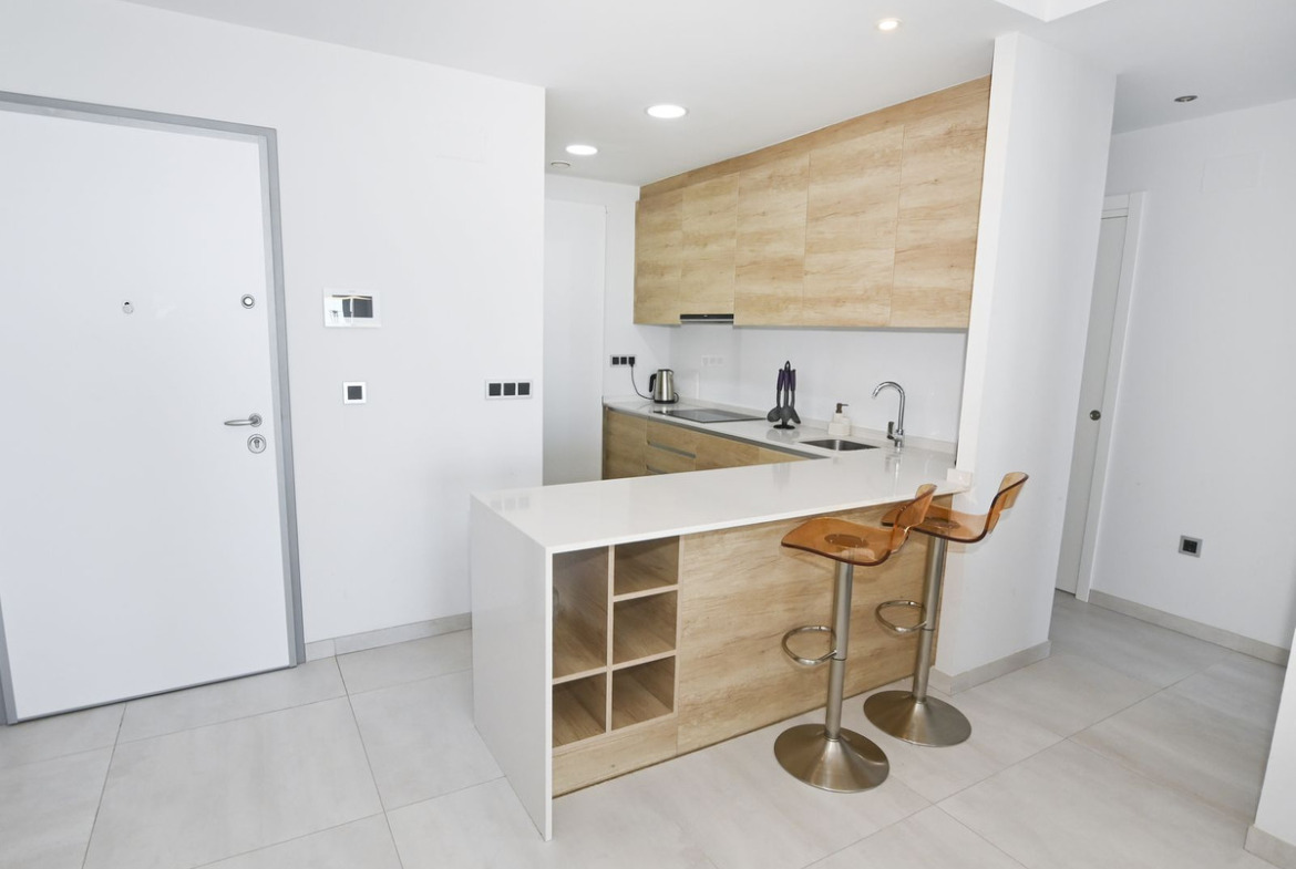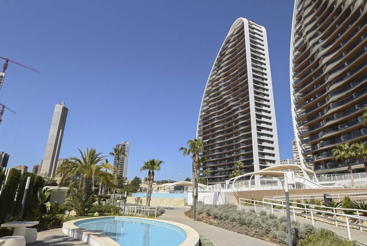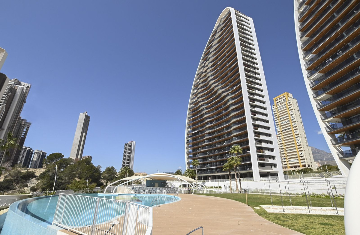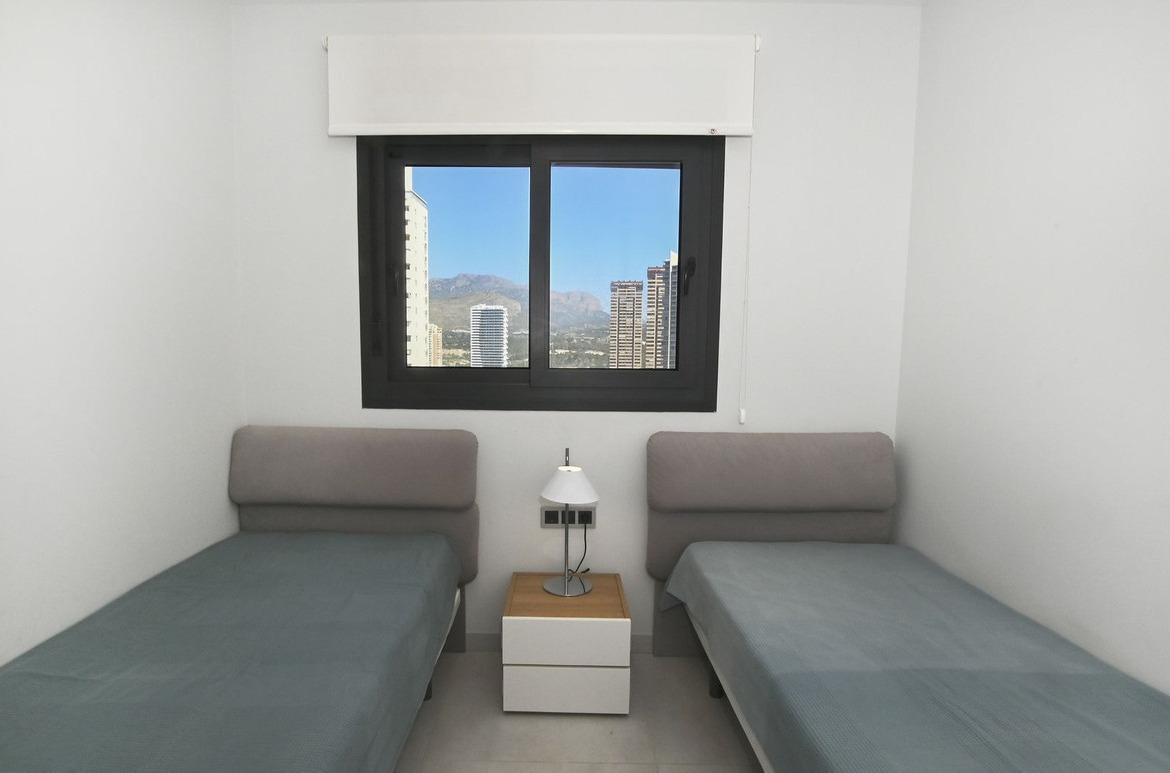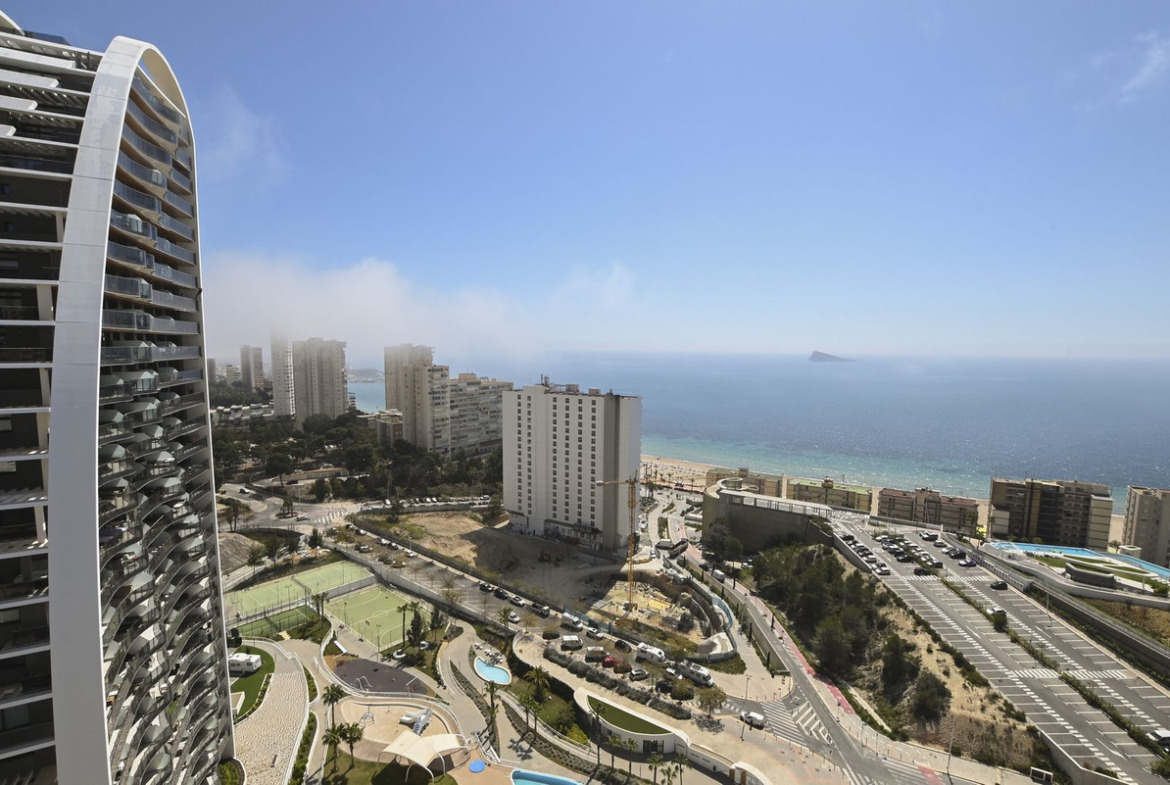 A modern apartment with a beautiful sea view in the second line of the coast in a gated community in Benidorm. The complex features a gym, heated swimming pool, unheated swimming pool, children's pool, jacuzzi, pool bar open in summer, children's playground, tennis court, football pitch, basketball court and beautifully landscaped grounds. The complex is also guarded.