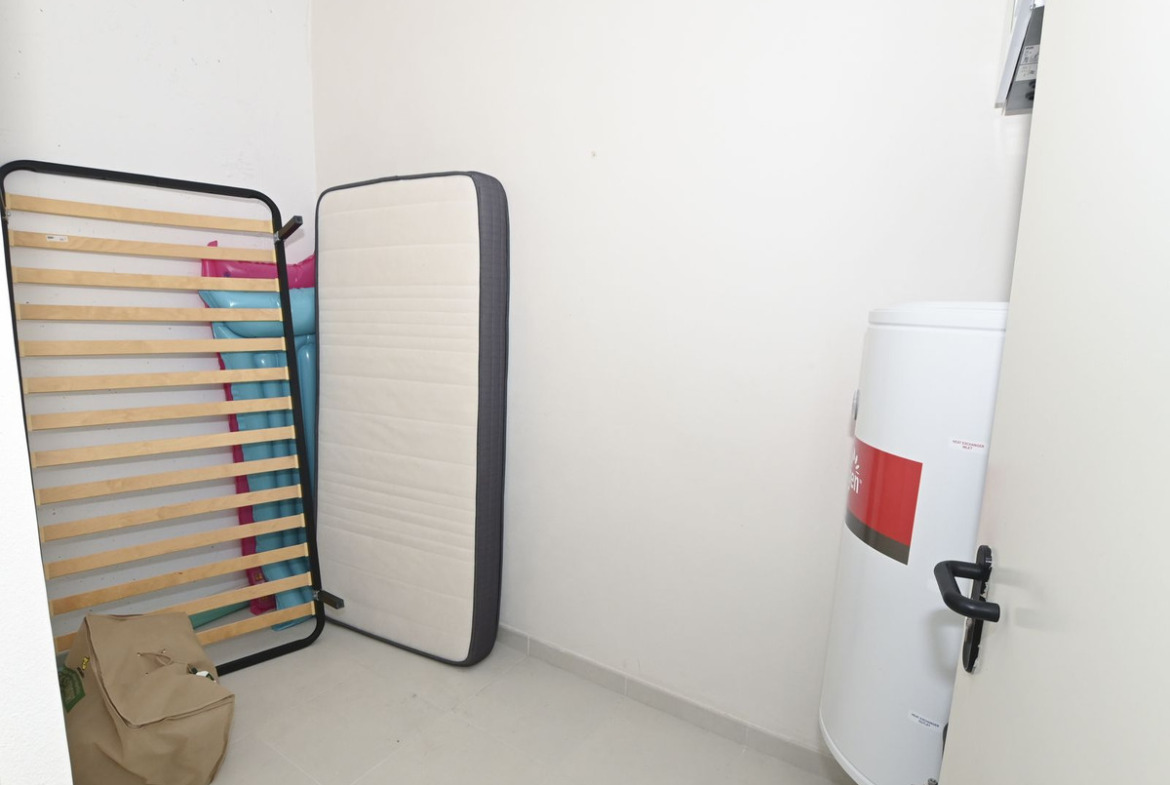 The property is for sale with an additional utility room of 6.27 m2 located on the same floor as the apartment, one garage space, an additional utility room in the garage and one external parking space (5 m x 2.95 m).