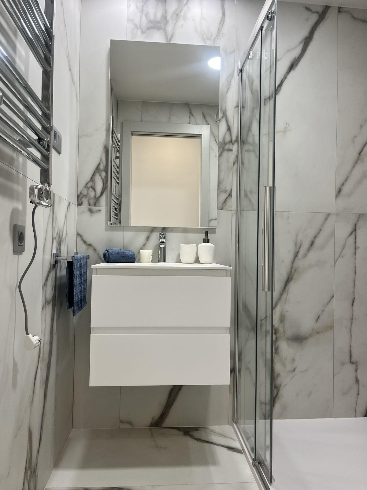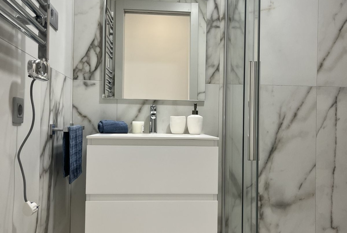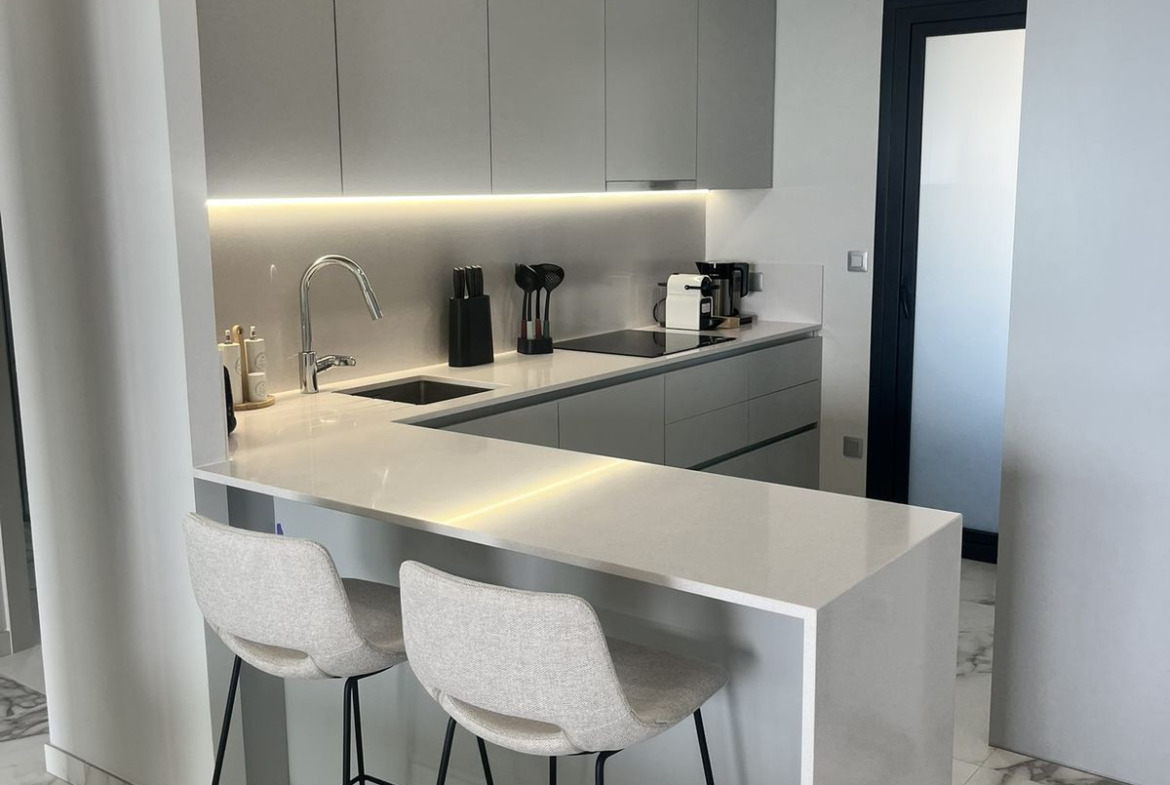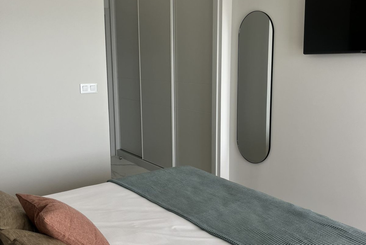 The investment consists of two towers – one with 30 floors and the other with 40 floors. The entire complex offers as many as 286 apartments with 1, 2, 3, and 4 bedrooms. The presented offer is an apartment from the secondary market, maintaining the standard of the primary market. It has two comfortable bedrooms and two bathrooms on the twenty-first floor. The apartment has a spacious terrace with glass balustrades, which allow you to enjoy more light during the day. It has air conditioning, underfloor heating in the bathrooms, and a parking space. The solid finishes will meet the highest quality standards, thanks to the use of the best materials and the latest technologies for the comfort of future residents.