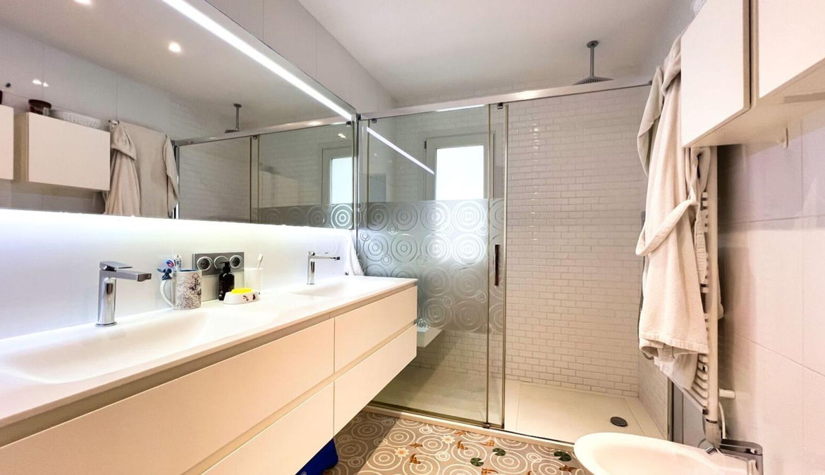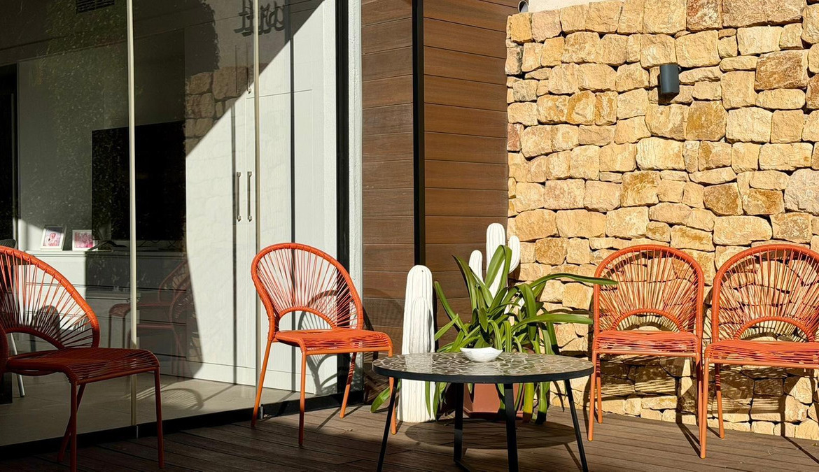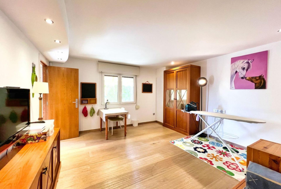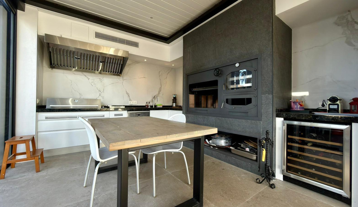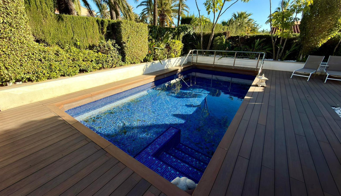 We present to you an exclusive luxury villa located in a prestigious residential area between Benidorm and La Nucía. The property is situated on a spacious plot of 984 m² and has a built area of 258 m², distributed over two floors that perfectly combine elegance, comfort, and functionality.Upon entering the house, a cozy hallway leads to a spacious and bright living room, an elegant dining room, and a charming glazed terrace with marble floors, from where you can enjoy beautiful views of the well-tended garden surrounding the house.The home has been completely renovated using high-quality natural materials, including premium wooden floors. The resting area has two comfortable bedrooms that share a complete bathroom, in addition to a large master suite with a spacious dressing room and a bright en-suite bathroom with natural light, equipped with a bathtub, independent shower, and double sink.Additionally, the home features an independent bedroom with a private bathroom, ideal for guests or family members, offering maximum comfort and independence. This space is conveniently connected to the fully equipped kitchen and the laundry area.The kitchen has direct access to a side terrace, perfect for outdoor dining. From there, you can access an impressive glazed barbecue area with a courtesy bathroom and direct access, through an elegant wooden deck, to the pool and solarium.On the plot, there is also a space designated for the storage of sports and nautical equipment. The upper floor has a spacious multifunctional room that can be used as an office, game room, or leisure area, in addition to two cozy guest bedrooms that share a complete bathroom.The garden, carefully designed, combines different shades of green with majestic palm trees and abundant vegetation, creating an intimate, relaxing, and very exclusive atmosphere.The urbanization offers 24-hour private security, a communal pool, tennis courts, and a social club.A unique opportunity to acquire a truly exclusive property in one of the most sought-after areas of the Costa Blanca. Contact us to arrange a private visit.
