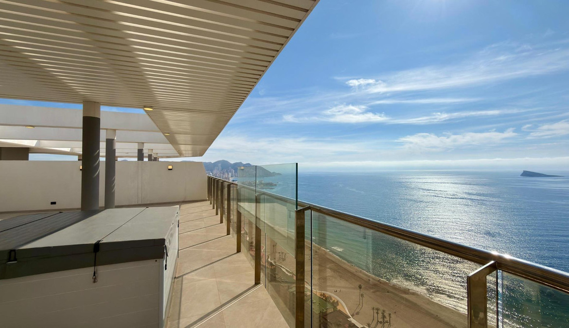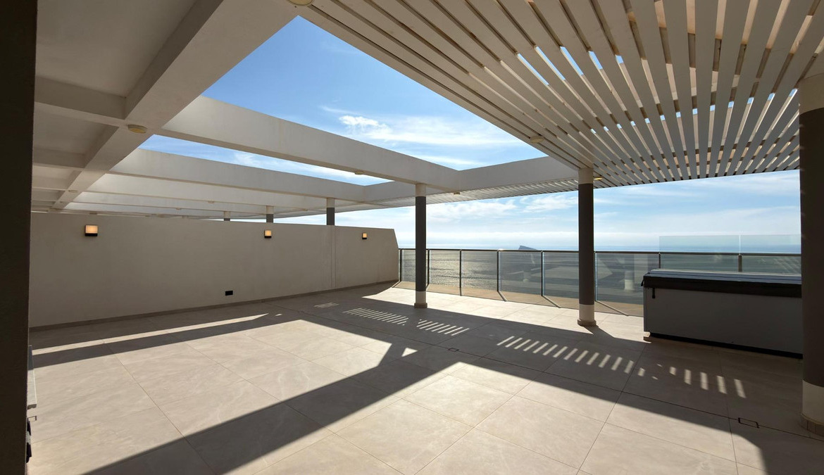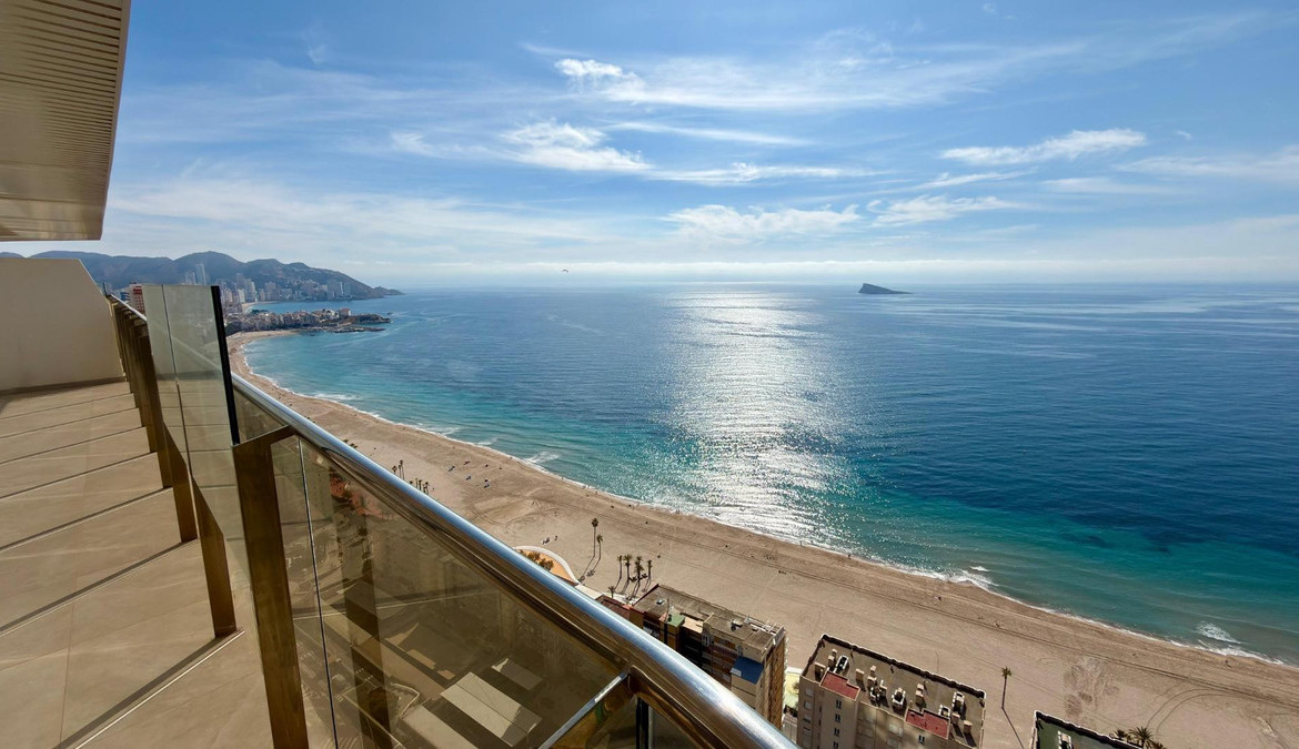 We present this spectacular property located on one of the highest floors of Sunset Cliffs, in the Playa de Poniente area, one of the most privileged locations in Benidorm. A unique penthouse that combines modern design, comfort, and exclusivity.The property features 305 m² built, distributed over 3 spacious bedrooms, 2 full bathrooms, a bright living-dining room, and a modern integrated kitchen designed to offer functionality and elegance.One of its main attractions is its impressive private solarium, ideal for enjoying the Mediterranean climate, hosting outdoor gatherings, or simply relaxing while contemplating the panoramic views of the sea and the city.✔️ Underfloor heating throughout the property✔️ South orientation✔️ Air conditioning (cool/heat)✔️ 2 parking spaces included✔️ 3 storage rooms✔️ Urbanization with pool, gardens, and exclusive common areasLocated on a high floor, this penthouse guarantees privacy, brightness, and an exceptional residential experience.???? An ideal property both as a primary residence and as a premium investment on the Costa Blanca.???? Contact us for more information or to schedule a visit.
