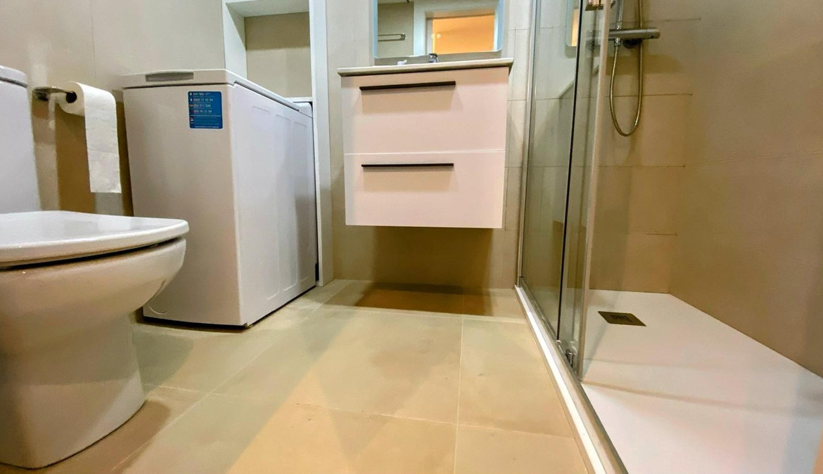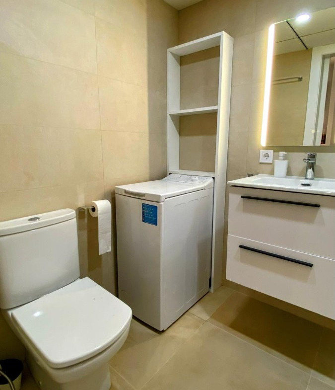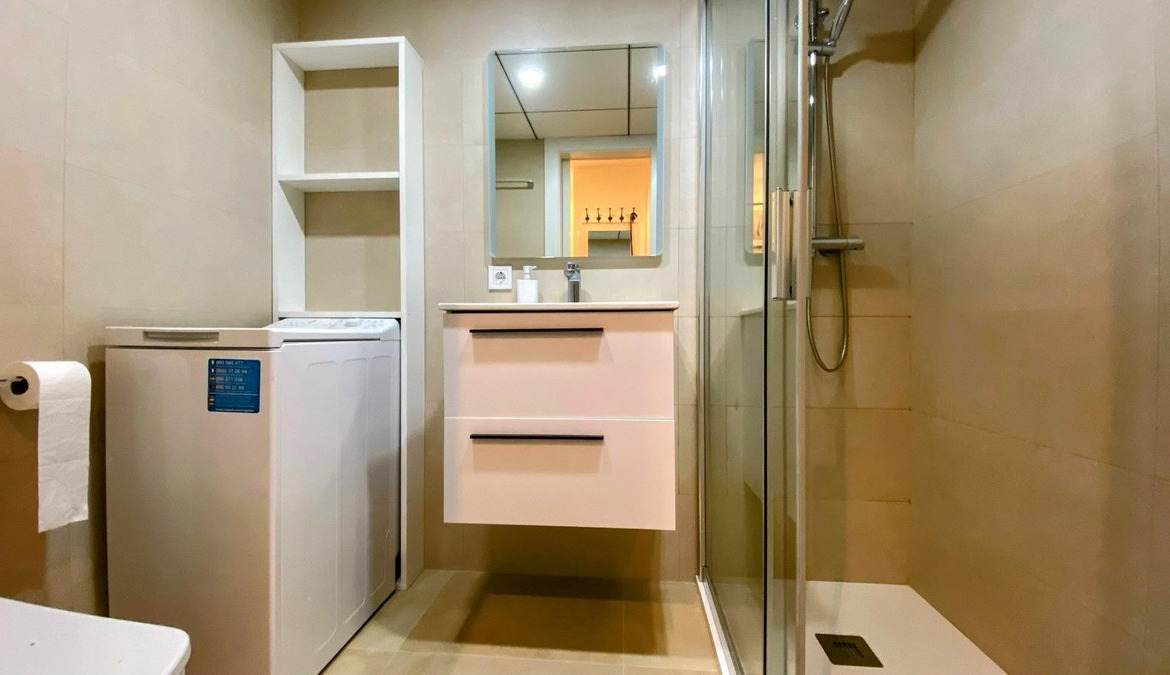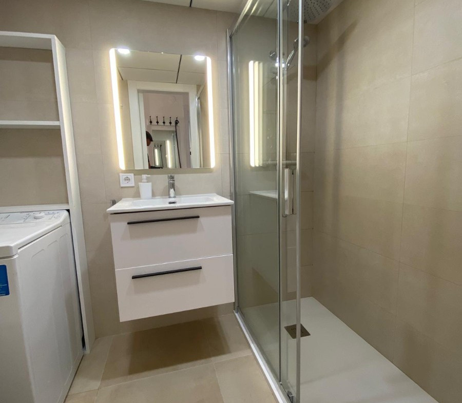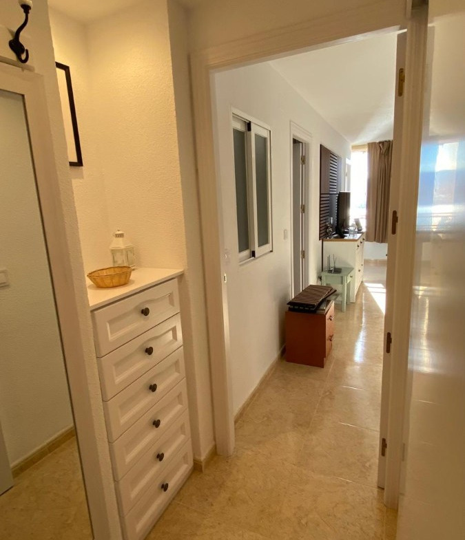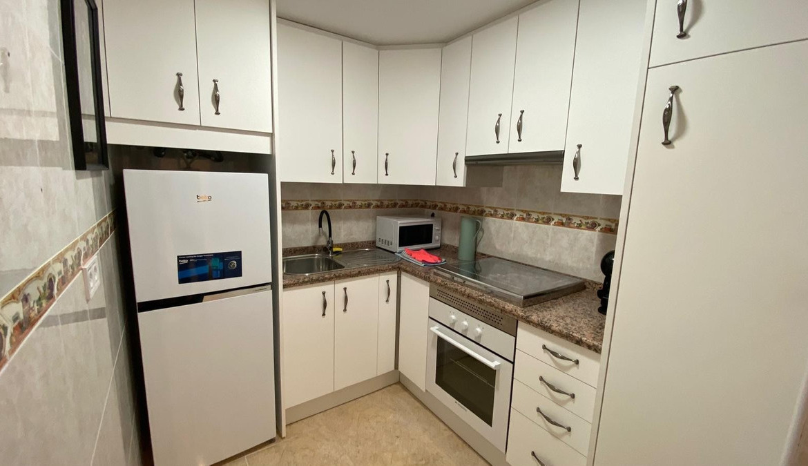 Apartment for rent for months in Benidorm, Rincón de Loix Cruz area, 60m2, 250m2 from the beach, 2 double bedrooms, bathroom, equipped kitchen, wooden interior carpentry, south facing, ceramic floor, aluminum exterior carpentry.