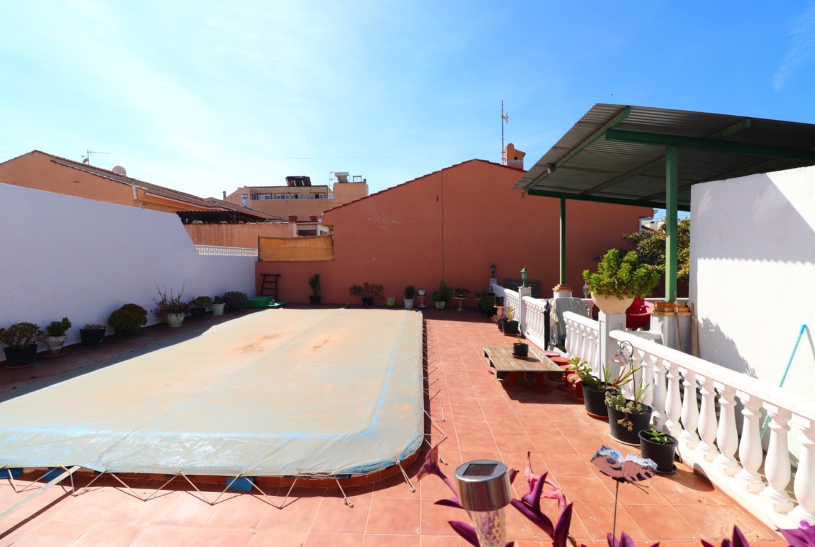 This West Facing, Three Bedroom Townhouse in Benijofar is located within walking distance of local amenities and facilities, and just a 15-minute drive from the beautiful beaches of the Costa Blanca South. Situated on a generous 488m² plot, the property boasts three bedrooms, one family bathroom, and a convenient downstairs cloakroom. The open-plan kitchen connects seamlessly to the lounge/dining room, which is fitted with air conditioning for comfort. Additionally, one of the bedrooms includes air conditioning. The townhouse is fitted with window and door grills throughout, ensuring security. Outside, the mature private garden features an impressive 8x4m private pool and a dedicated BBQ area, perfect for entertaining. There’s also a shaded outdoor dining and entertainment space, ideal for enjoying the warm Spanish climate in comfort. This charming property offers a fantastic balance of indoor and outdoor living, making it an excellent choice for a family home or holiday retreat.