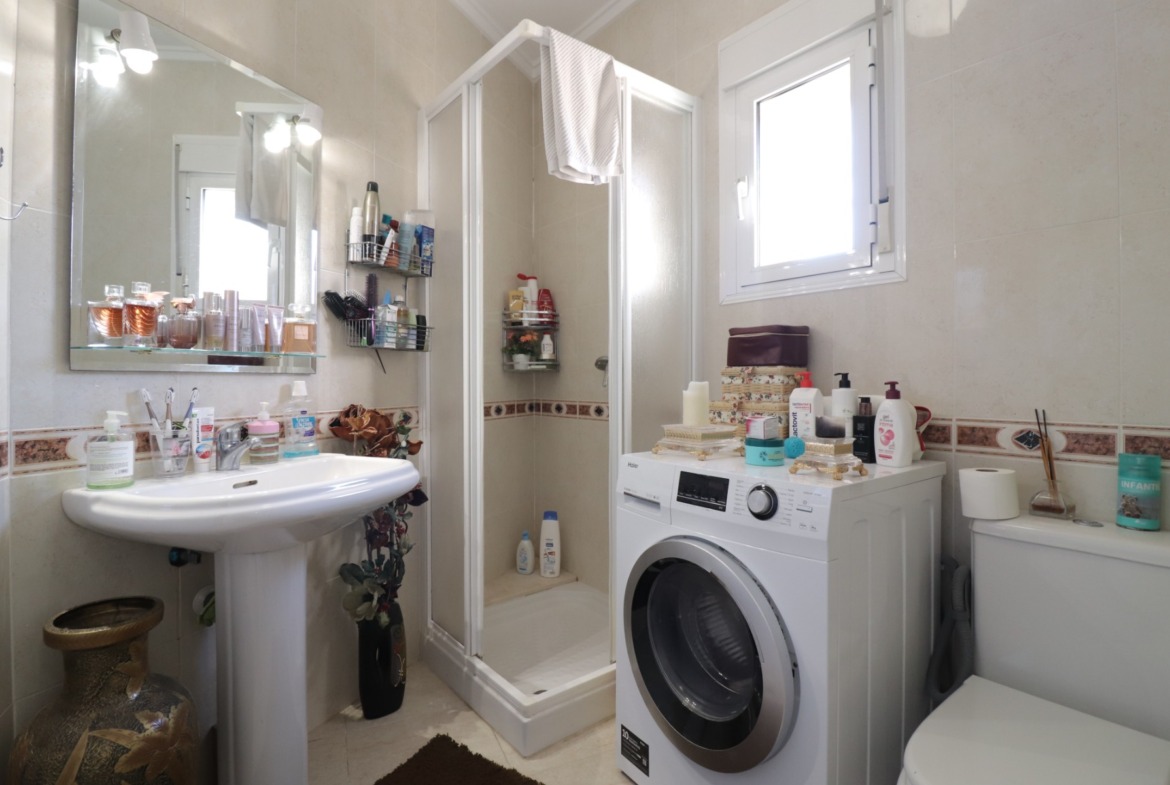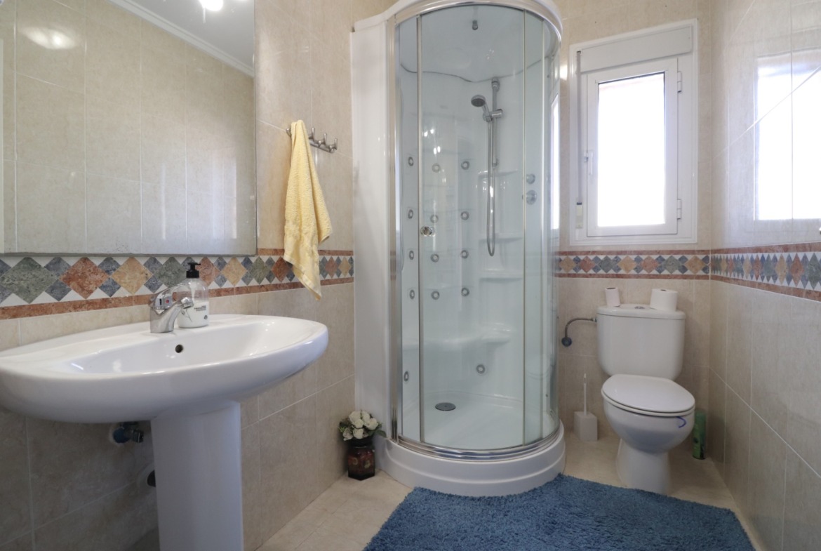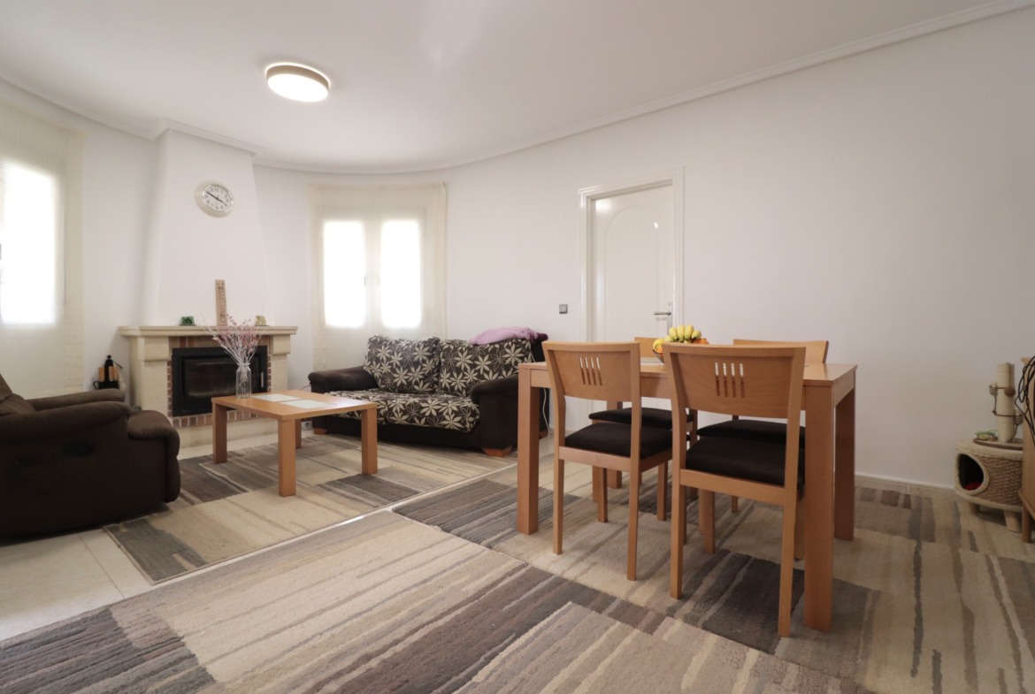 This South Facing, Three Bedroom, Detached Villa in Monte Azul, is located in a peaceful residential area with a bar and restaurant nearby. Just a five-minute drive to both Benijofar and Quesada, where you will find all main amenities, including supermarkets, shops, an array of bars and restaurants. La Marquesa Golf Course is only 10 minutes away, while the beautiful beaches of the Costa Blanca can be reached in just 15 minutes. Situated on a generous 400m2 plot, this 120m2 villa is set across one level, offering a spacious curved and arched entrance terrace, perfect for relaxing or dining outdoors overlooking the pool. The bright and airy lounge/dining room features a fireplace with a log burner and an air conditioning unit for year-round comfort. The open-plan fitted kitchen is well-equipped and conveniently connected to the living space. The villa boasts three double bedrooms, all with built-in wardrobes, plus a family shower room and an en-suite bathroom to the master bedroom. Externally, the garden is designed for low maintenance, mainly tiled with a pebbled area, planted borders, shrubs, and mature palm trees. There is an 8 x 4 private pool, ideal for cooling off in the warm Spanish sun, as well as off-road parking with a carport. A fantastic family home in a great location, offering comfort, convenience, and outdoor living on the Costa Blanca South!