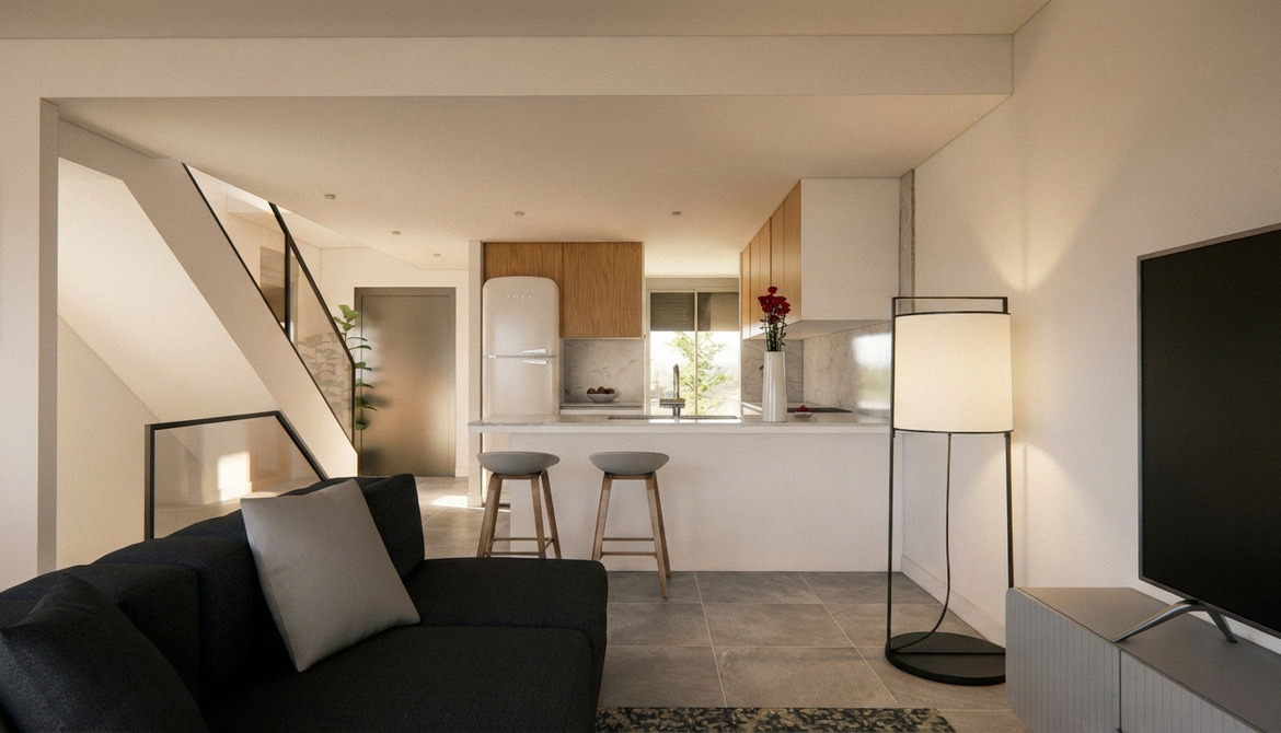 Exclusive development of 2 duplex homes with 3 bedrooms, designed to offer comfort, space, and modern living. Each property features a private garage floor, terrace and garden, rooftop solarium, and access to a communal swimming pool.