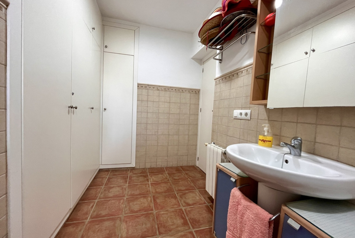 Step into a bright and airy living area, complete with a built-in fireplace, creating a warm and inviting atmosphere. The villa boasts generously sized bedrooms, ensuring plenty of room for family and guests. Upstairs, you’ll find an independent apartment with its own bedroom, kitchen, and bathroom—ideal for visitors or as a private retreat.