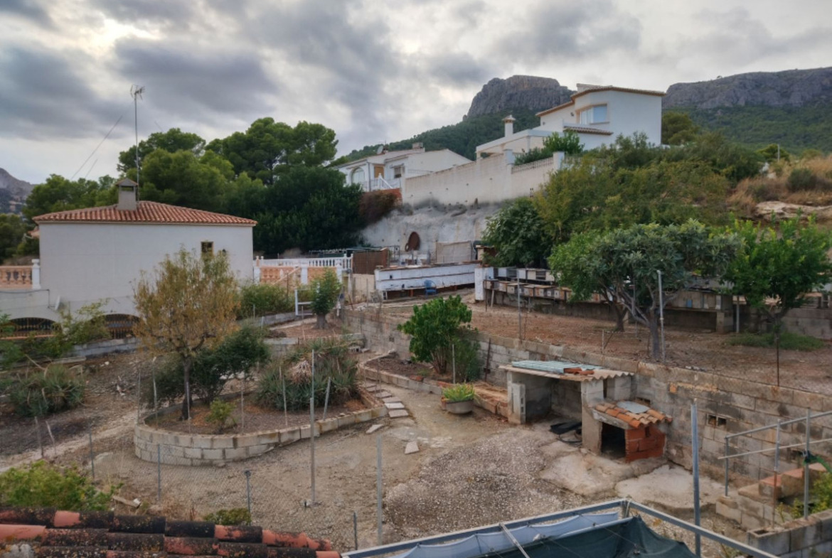 House ready to move into with 219 m², 2 garages of 24 m² each and a storage room. Ground floor: 4 bedrooms, 2 toilets, 2 living rooms of 20 m² each (one with fireplace) with a 25 m² terrace, storage room, a large kitchen of about 25 m2. A covered patio and an open patio with barbecue and wood oven. First floor: large terrace of about 100 m² and a board of about 40 m². Possibility to build a pool on the plot, south facing and a location near the urban center of Calpe. The plot can be segregated to build another house.