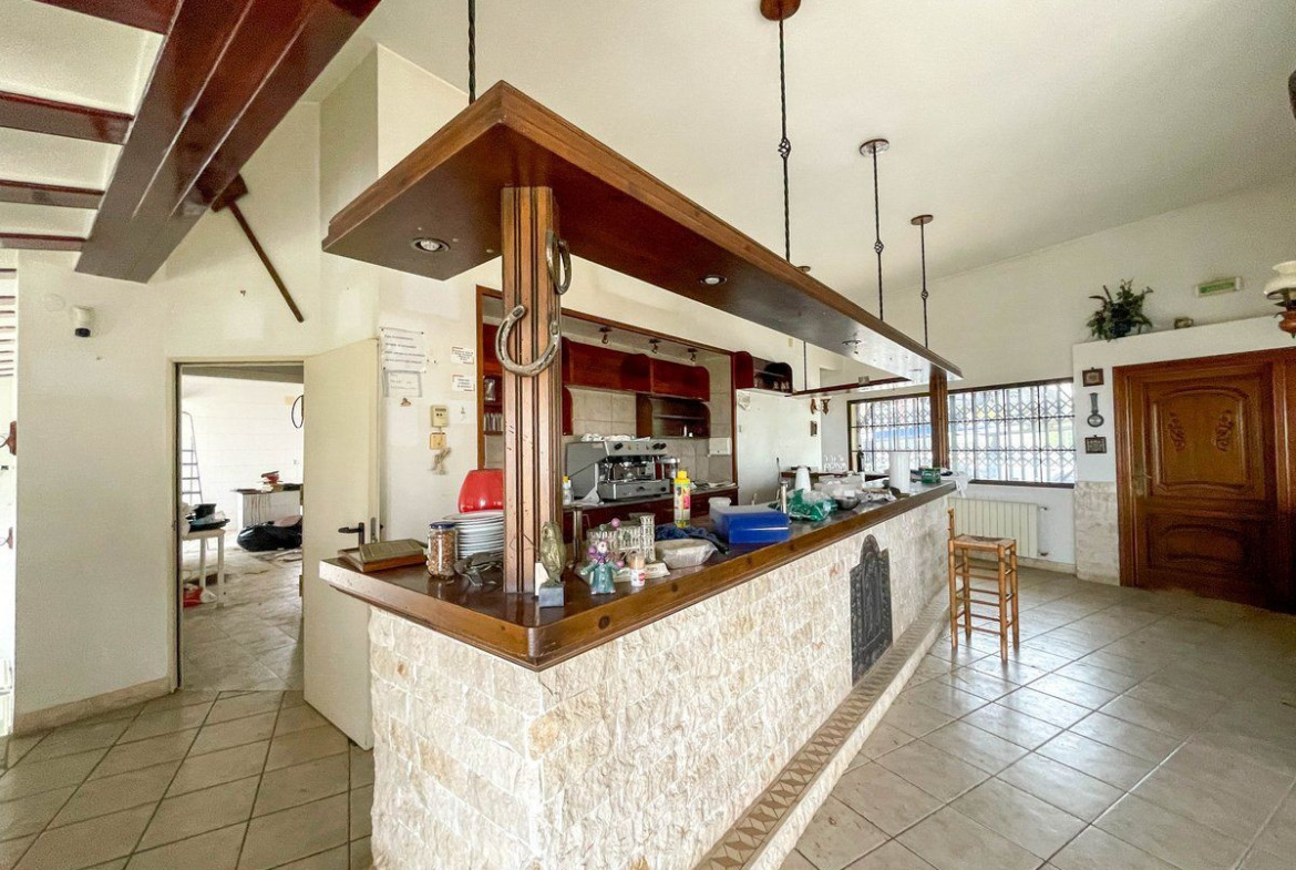 Currently, the property is structured for multiple uses. It features spacious lounges that have operated as a restaurant, a large fully equipped kitchen, three apartments, and a basement. Thanks to its versatility and design, it allows for various development possibilities, whether maintaining its commercial use or transforming it into an exclusive residence.
