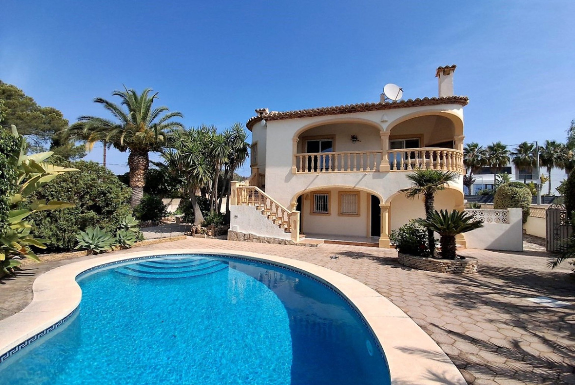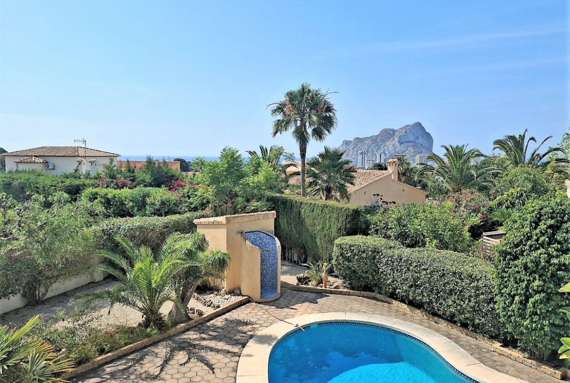 For sale: villa in Carrio Alto, Calpe. South-facing, with swimming pool, guest room, garage, and sea views. Close to the beach and amenities.