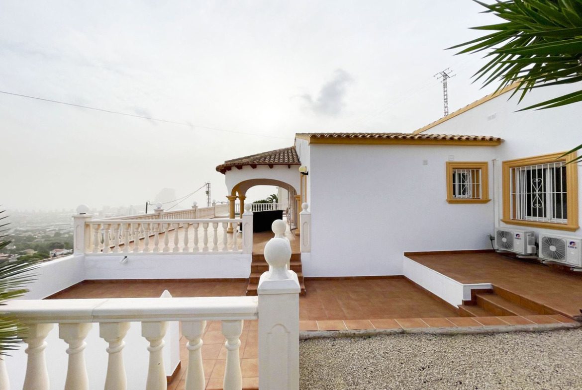 For sale: an <strong>impressive detached villa</strong> located in an elevated and quiet area of Calpe, offering <strong>panoramic sea and mountain views</strong>. A spacious and comfortable home designed to provide maximum comfort all year round.