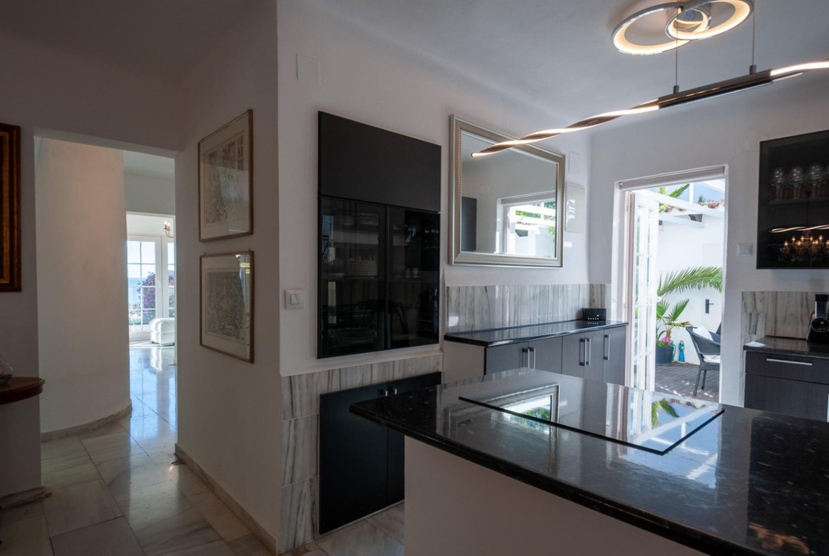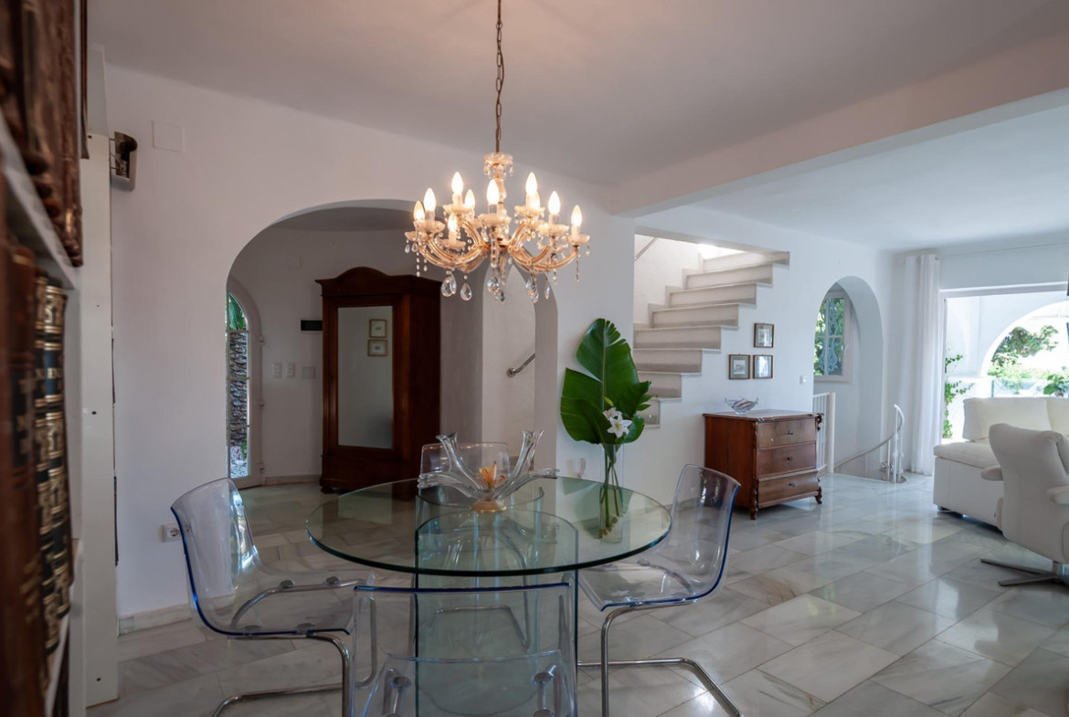 EXCLUSIVE~Unique and charming domain with two fully separate homes, each with its own private access, while you can easily move from one home to the other via the atmospheric garden. Perfect for dual living, guest accommodation, or investment — with optimal privacy and flexibility.~~The main house is move-in ready and offers three spacious floors with a bright living room, open kitchen, multiple sunny terraces with stunning sea views, a separate studio with bathroom, and a beautifully landscaped garden in French style. The shared swimming pool, surrounded by mature trees, is shared by both homes and serves as a delightful relaxation point. Extras include air conditioning, double glazing, generous storage rooms, pergola, and spacious parking.~~The second house, full of renovation possibilities, features a spacious living room, two bedrooms, bathroom, guest toilet, compact kitchen, and two large sun-drenched terraces with magnificent sea views. Below this house is a separate apartment to be renovated with 1 bedroom, bathroom, kitchen, living room, covered terrace, and extra storage space.~~Both homes have their own enclosed garage and extra parking space on the driveway.~An exceptional opportunity in an exclusive location with sea views, tranquility, space, and endless potential.