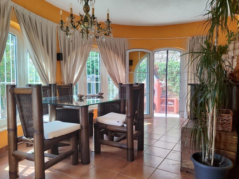 Excellent property located very close to the beach and the marina Marina Port Blanc, with wide and step-free access, ideal for those seeking comfort, space, and a prime location.⭐ MAIN FEATURES·Single-storey property·3 bedrooms with built-in wardrobes·2 bathrooms, one of them en suite·956 m² plot·Private 12 × 4 m swimming pool with salt chlorination and heating???? SURFACES·Built area: 156 m²·Plot size: 956 m²???? OUTDOORS AND GARDENThe property sits on a spacious plot with a landscaped Mediterranean garden, featuring palm trees, fruit trees, and mature cypress hedges. It offers parking for 3 vehicles, one of them covered, access via an automatic gate, a decorative pond, and a built storage shed for garden tools.???? LEISURE AREAOutstanding 12 × 4 metre private swimming pool, equipped with a salt chlorination system, roller cover, PVC pool cover, and integrated heating system, alongside a 34 m² glazed constructed room, perfect for year-round enjoyment.⚙️ COMFORT AND EQUIPMENTThe property features split air conditioning in all bedrooms and living areas, underfloor heating powered by a gas boiler (installed in 2020), a gas fireplace, fibre-optic WiFi, and two satellite dishes (Hispasat and Astra).???? ADDITIONAL SPACESThe house includes a 30 m² basement storage room with ceramic flooring, and all buildings and annexes are registered in the cadastre and land registry, providing full legal security.