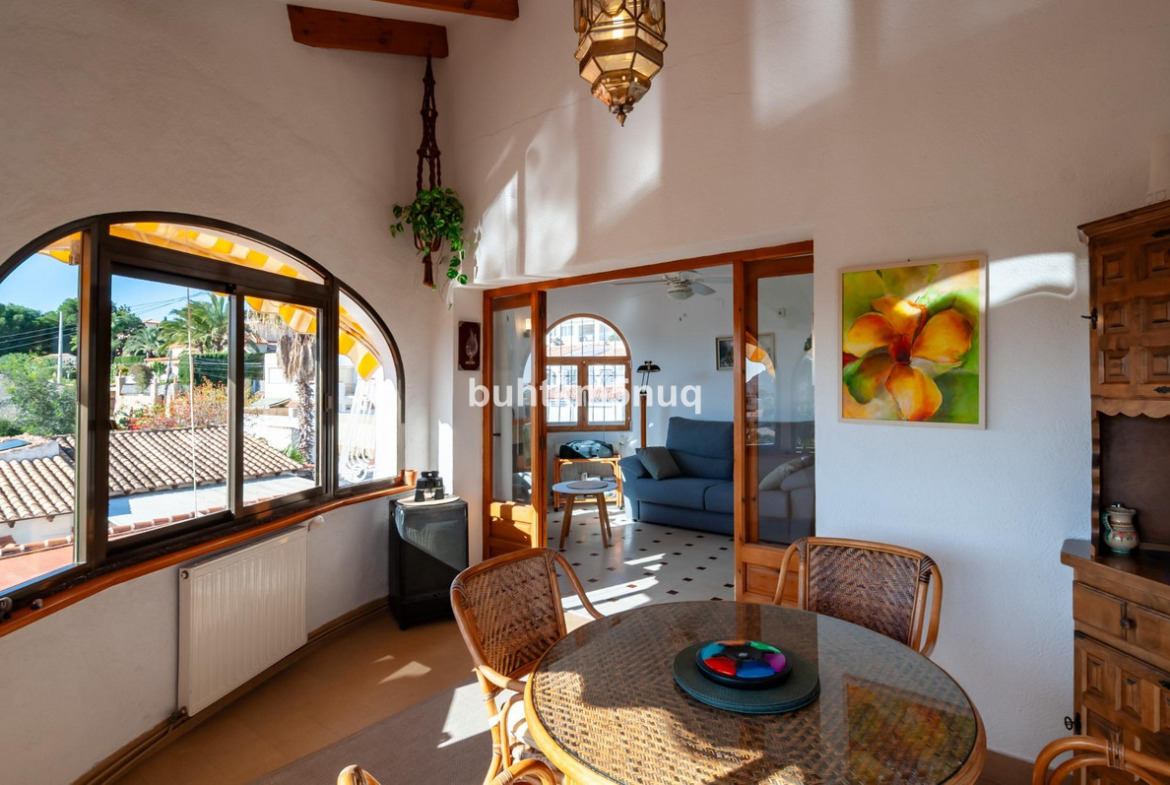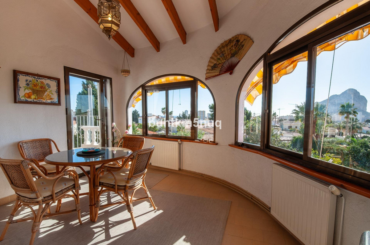 A unique opportunity in Calpe – charming house with views of Peñón de Ifach and the sea! ✨~This property is located in a quiet and sought-after residential area of Calpe, offering stunning views of the iconic Peñón de Ifach. From the upper floor, you even get panoramic sea views. Smartly laid out over two levels, the house features several terraces, a garden, and generous outdoor spaces – perfect for relaxing and enjoying the Mediterranean lifestyle.~~Ground floor:~* Apartment with 1 bedroom and a cozy living room with open kitchen~* Two covered terraces with direct access to the garden~* Views of Peñón de Ifach~* Garden with enclosed utility room and extra storage space~* Garage accessible from both the street and the garden~Upper floor:~* Two bedrooms with balcony and terrace, both with Peñón de Ifach views~* Bathroom with bathtub~* Spacious living room with open kitchen and access to a covered terrace with sea view~Extras that make this property exceptional:~* Pergola for one car + multiple parking spaces on the plot~* Separate toilet in the garden~* Two independent entrances to the house~* Ideal location: quiet, yet close to beaches, shops, and Calpe center~~In short, this is an excellent opportunity for anyone seeking a comfortable home in a top location. Perfect both as a family home or an investment – don’t miss this unique chance!