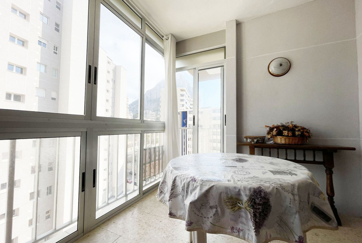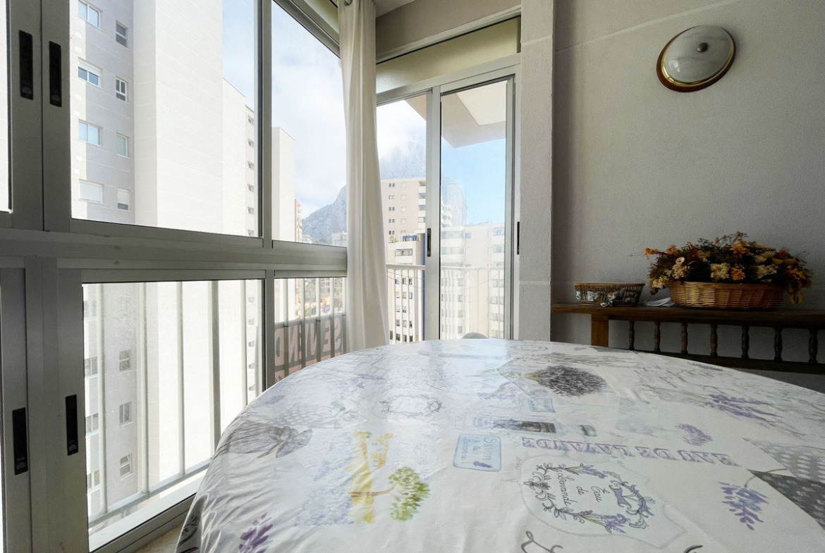 This bright apartment stands out for its strategic location and its impressive <strong>views of the Peñón de Ifach and partial sea views</strong> from the <strong>8th floor</strong>. Located just <strong>100 m from the beach</strong> and with a <strong>supermarket only 30 m away</strong>, it offers maximum convenience for enjoying Calpe.