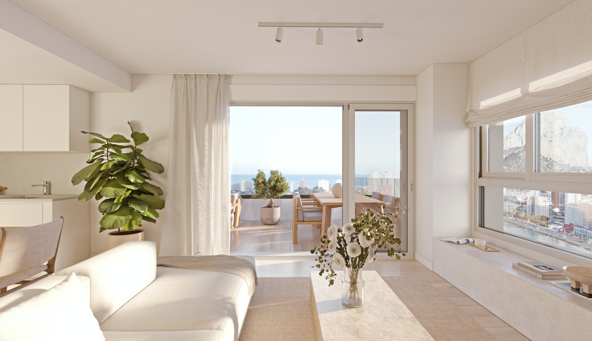 A development of new homes that combines contemporary style in 2 and 3-bedroom apartments and penthouses with a garage and storage space, featuring optimised layouts and outstanding orientation. An exclusive gated community with a porter’s lodge and superb communal areas, comprising three blocks boasting outstanding architectural and designer style in a matchless setting. The magnificent terraces are the focal point. Open spaces that extend the homes and afford spectacular views of Arenal-Bol beach, Las Salinas park and the Peñón de Ifach rock.