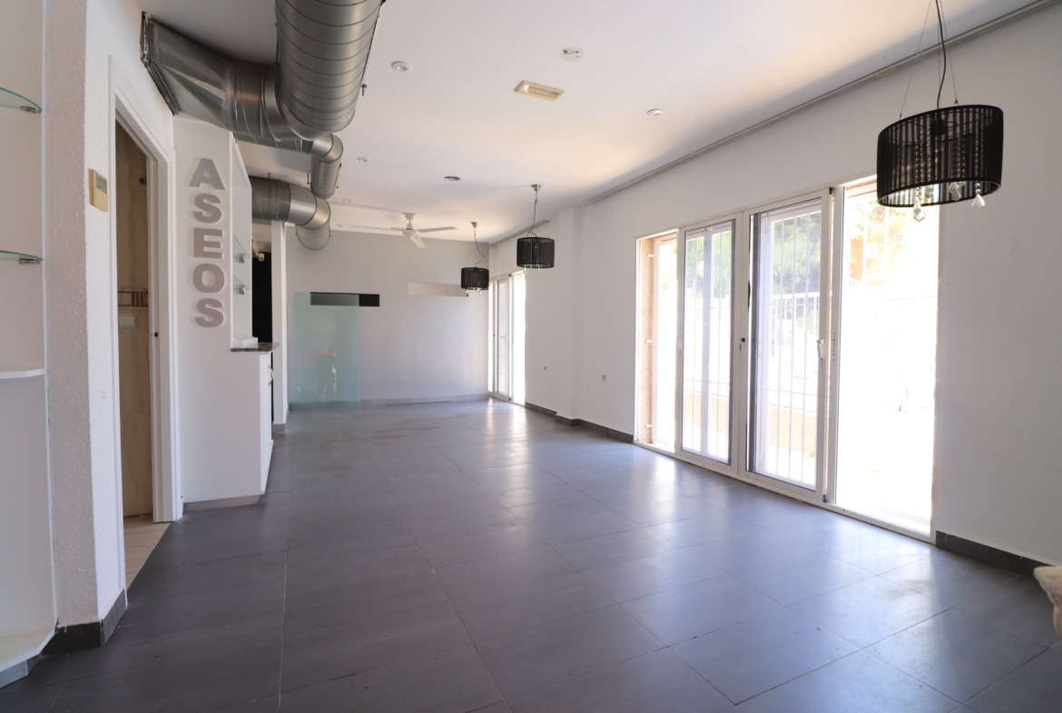 This Desirable, Corner, South-West Facing, Empty Bar & Restaurant is located in the popular area of Ciudad Quesada, situated on the La Marquesa golf course and very close to Rojales. Consisting of a 155m2 build size, able to do over 48 covers inside and a possible 24 covers on the covered terrace outside. Currently comprising inside of a stylish & modern feel; spacious dining area; a large and fully fitted bar; a separate commercial kitchen; separate pot wash area, with back door to the rear external storage space; an internal storage area; 3 bathrooms, one male, one female (with disabled access), and one for staff only! Outside is a spacious ‘L’ shaped terrace, covered to the front, with beautiful, direct, uninterrupted panoramic views overlooking the lovely and well maintained golf course, and its water feature; also to the other side is a view over the communal swimming pool next door! A great opportunity to own your very own bar & restaurant… Great opportunity & investment… Book your viewing now by calling +34 966 712 440