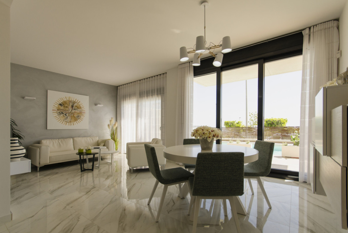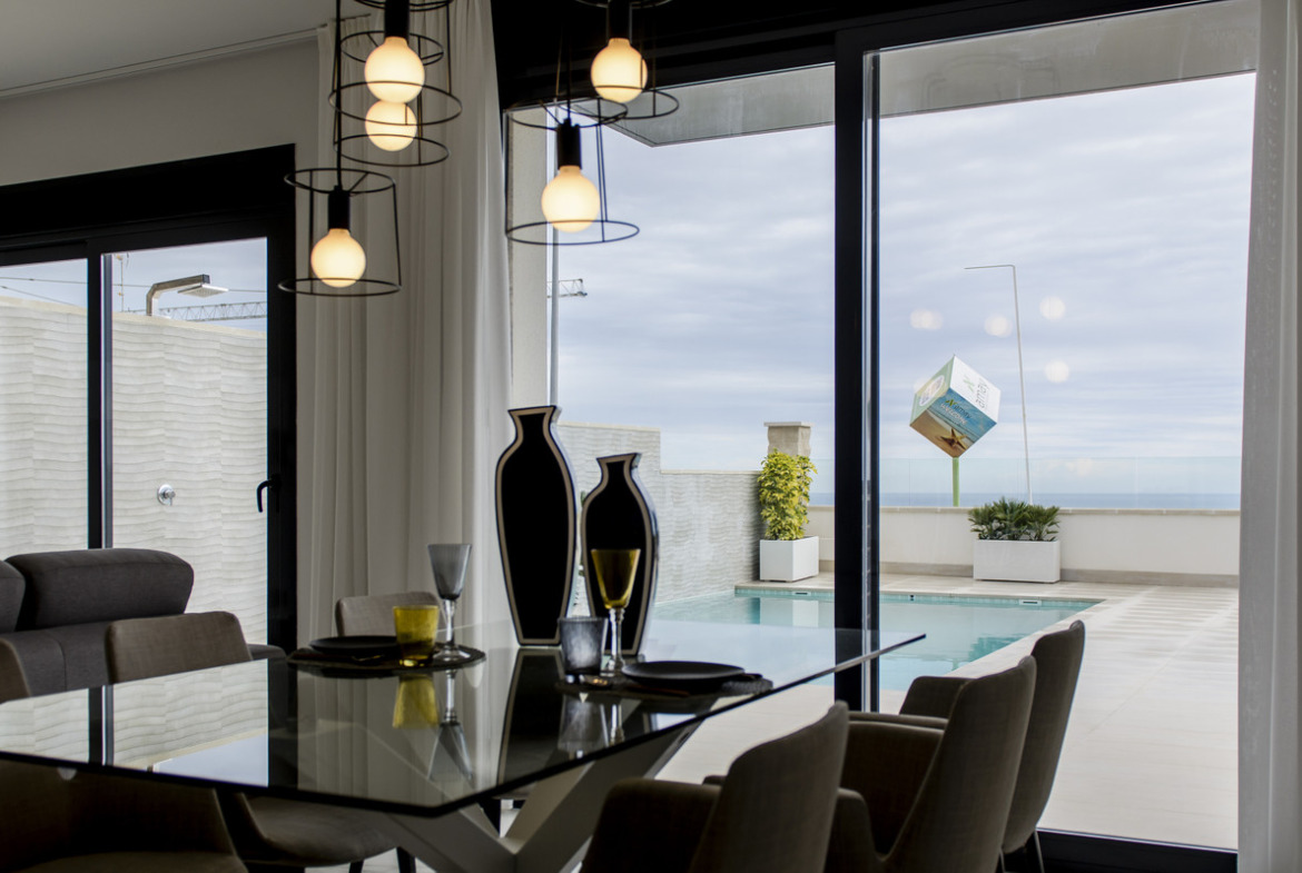 Our flagship development is a complex of detached villas in Dehesa de Campoamor. This development has been built for the most exacting clients. This development is in one of the best areas of Campoamor, just four minutes from the beaches of Orihuela and close to many essential services such as restaurants, supermarkets, pharmacies, etc.