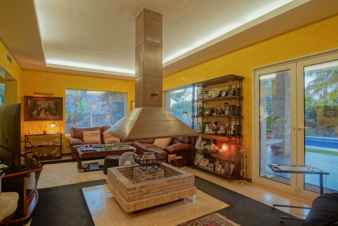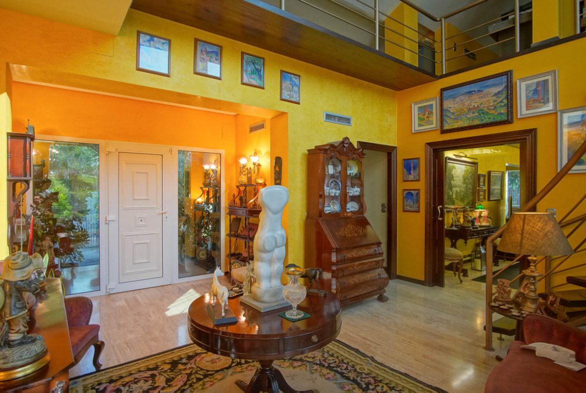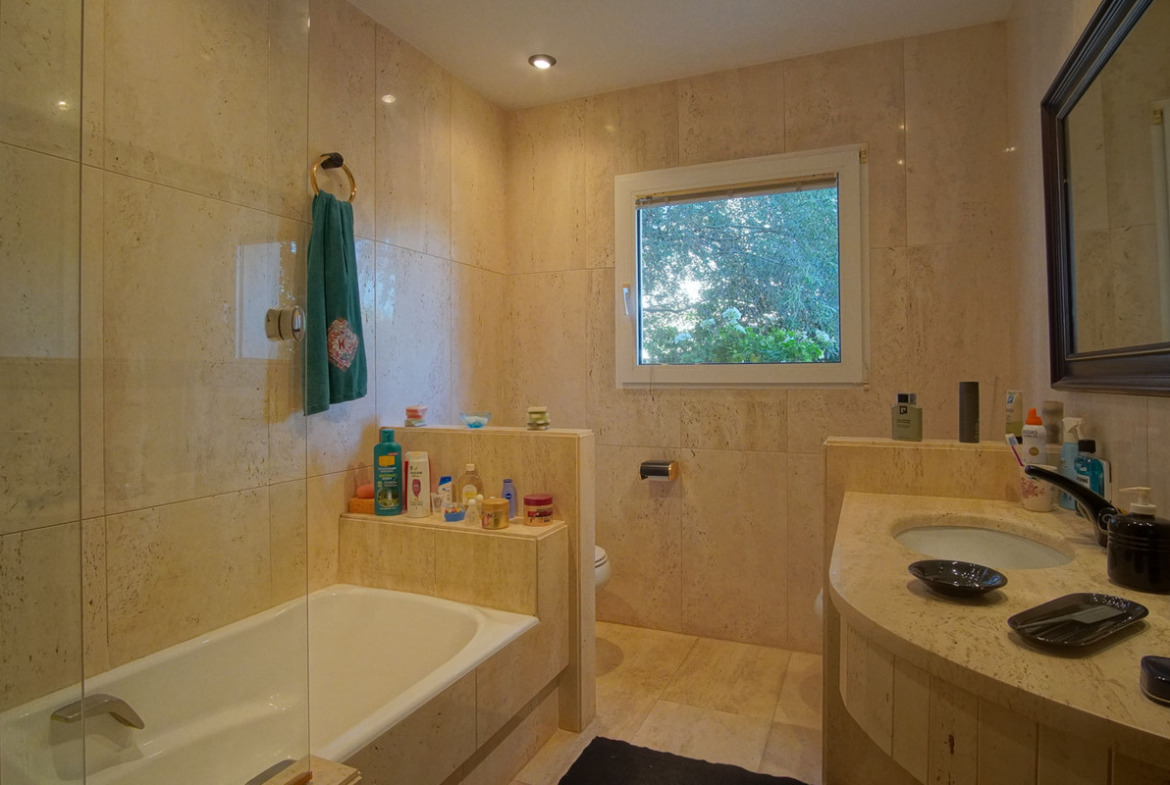 Outside, a well-kept Mediterranean garden with natural grass, a private pool, a barbecue area, and an outdoor toilet invite you to enjoy the Costa Blanca climate. The fully fenced plot includes parking for several vehicles. The villa has central heating, ducted air conditioning, marble floors, double-glazed exterior carpentry, and an alarm system.