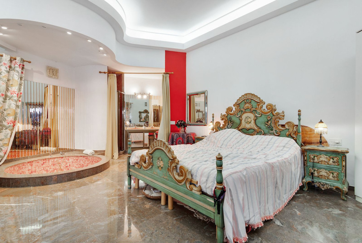 Entry level is comprised of 5 areas. The lounge, dining area, kitchen and main bedroom all are generous areas with high ceilings and the lounge and the dining area are separated by a fireplace. The master bedroom has an inset bath and there is an en-suite shower room. Separate toilet also on this level. Large open and glazed-in terraced areas accessed from the lounge. Views of the swimming pool and the sea from this level.