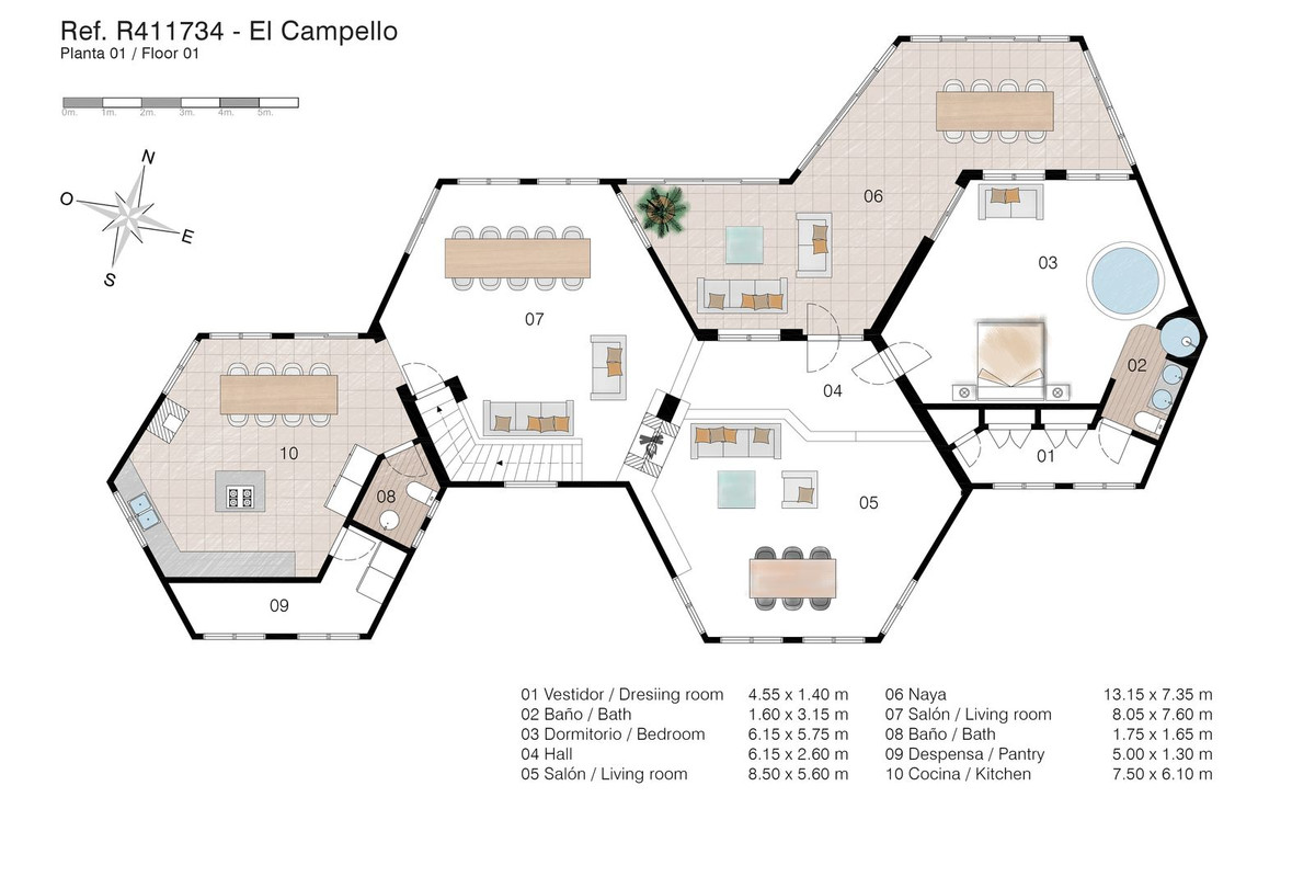The property boasts all orientations, but the lounge terraces and pool are south-facing.