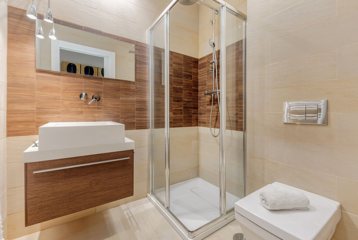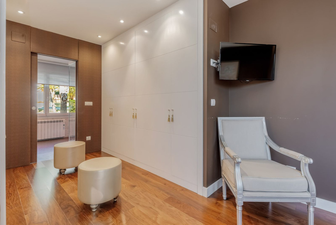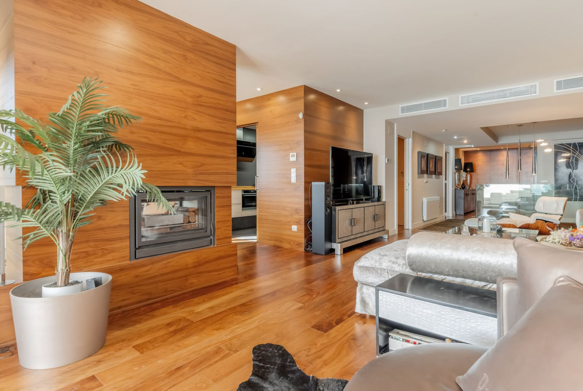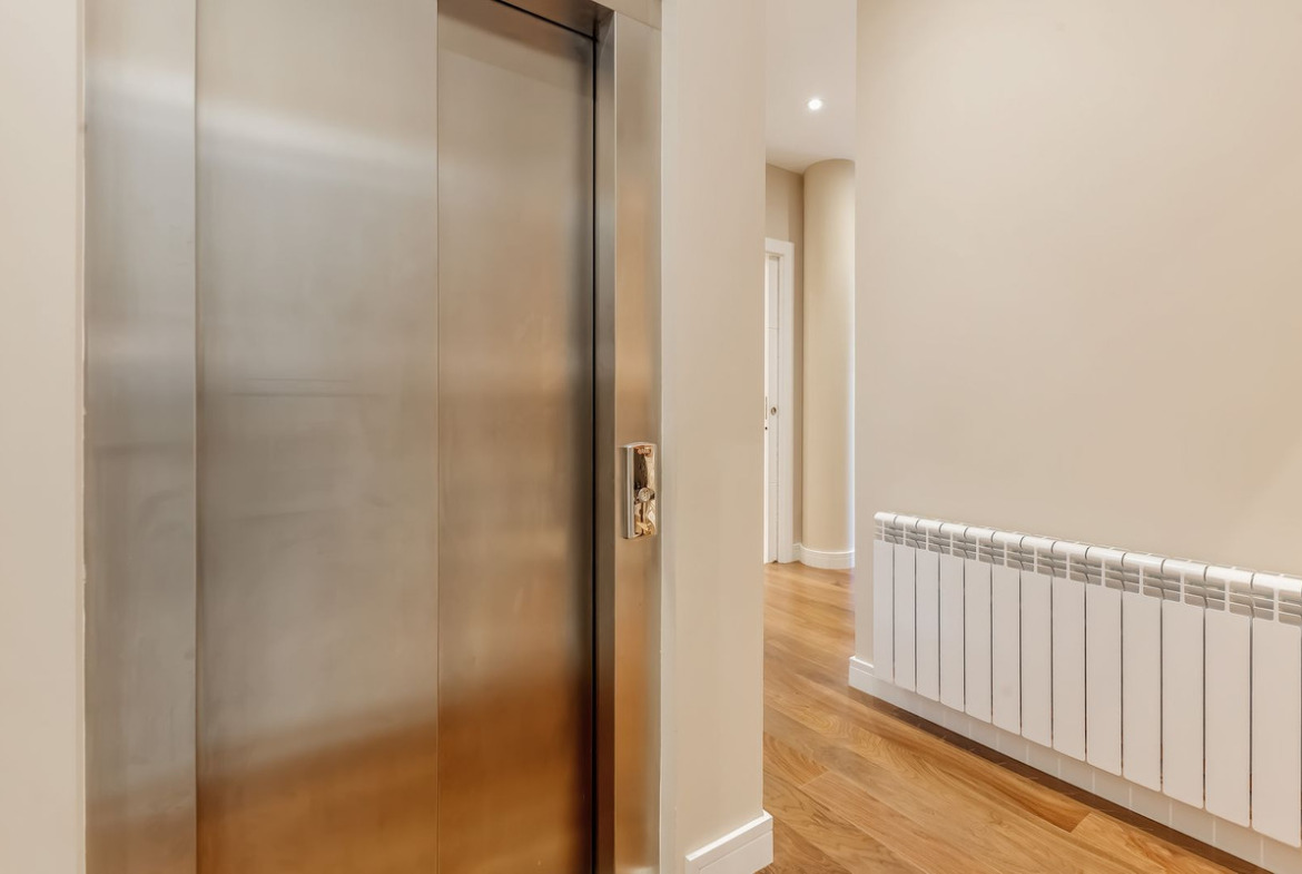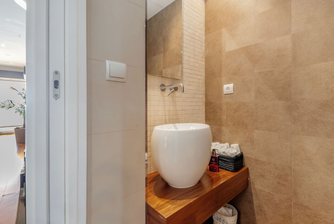 This level also features a luxurious master suite with dressing area and an elegant bathroom with bathtub and shower with sauna. A guest toilet completes this floor. The property benefits from lift access, ensuring comfortable and discreet movement between all levels.
