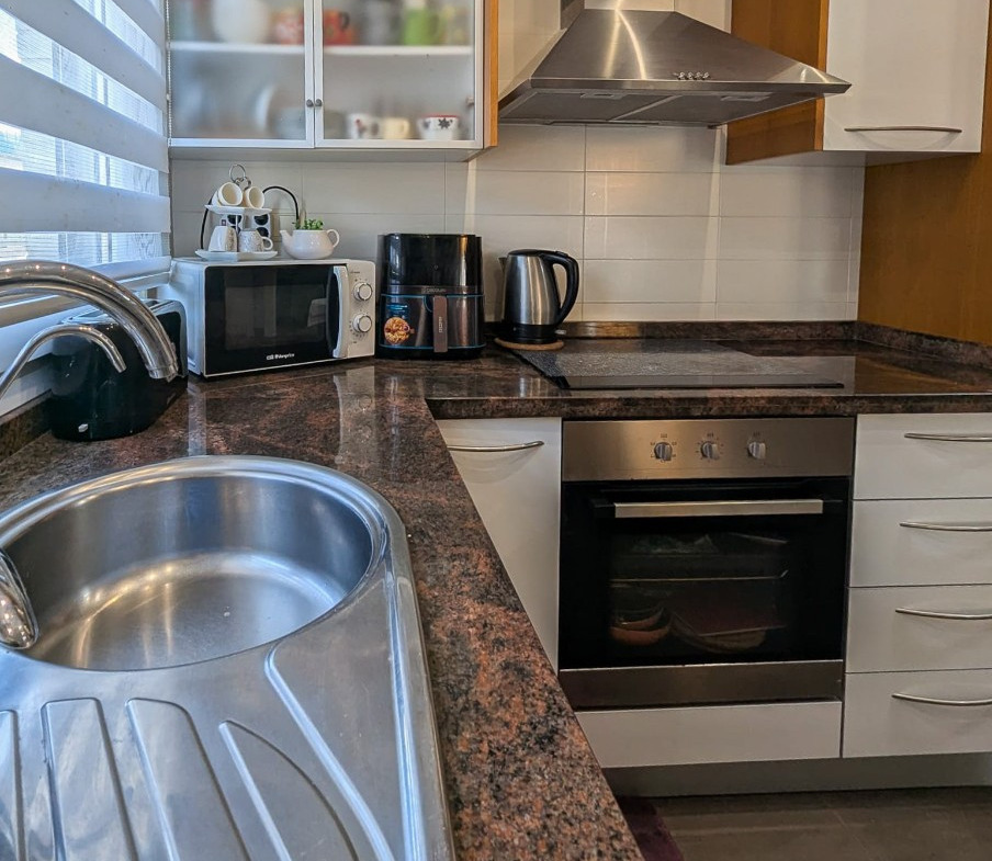 The complex offers a communal swimming pool , children's play area , event space , and a pleasant environment for families. Its location is especially convenient: the tram is just steps away , a large park is very close , and the sea is only a 5-minute walk . Furthermore, in the immediate vicinity, you'll find supermarkets, a school, a market, a medical center, and restaurants , covering all your needs without needing a car.