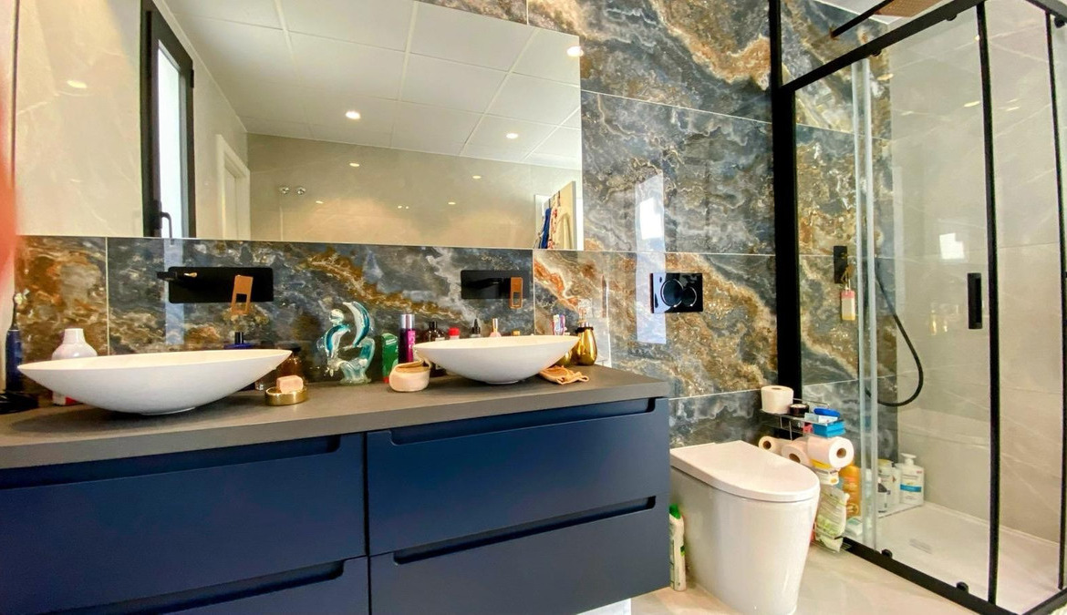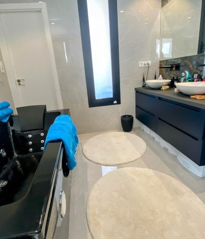 The villa features 5 elegant bedrooms and 4 full bathrooms, two of them en-suite, all with underfloor heating for optimal year-round comfort. Every space is thoughtfully designed with high-end materials and a modern, timeless aesthetic.