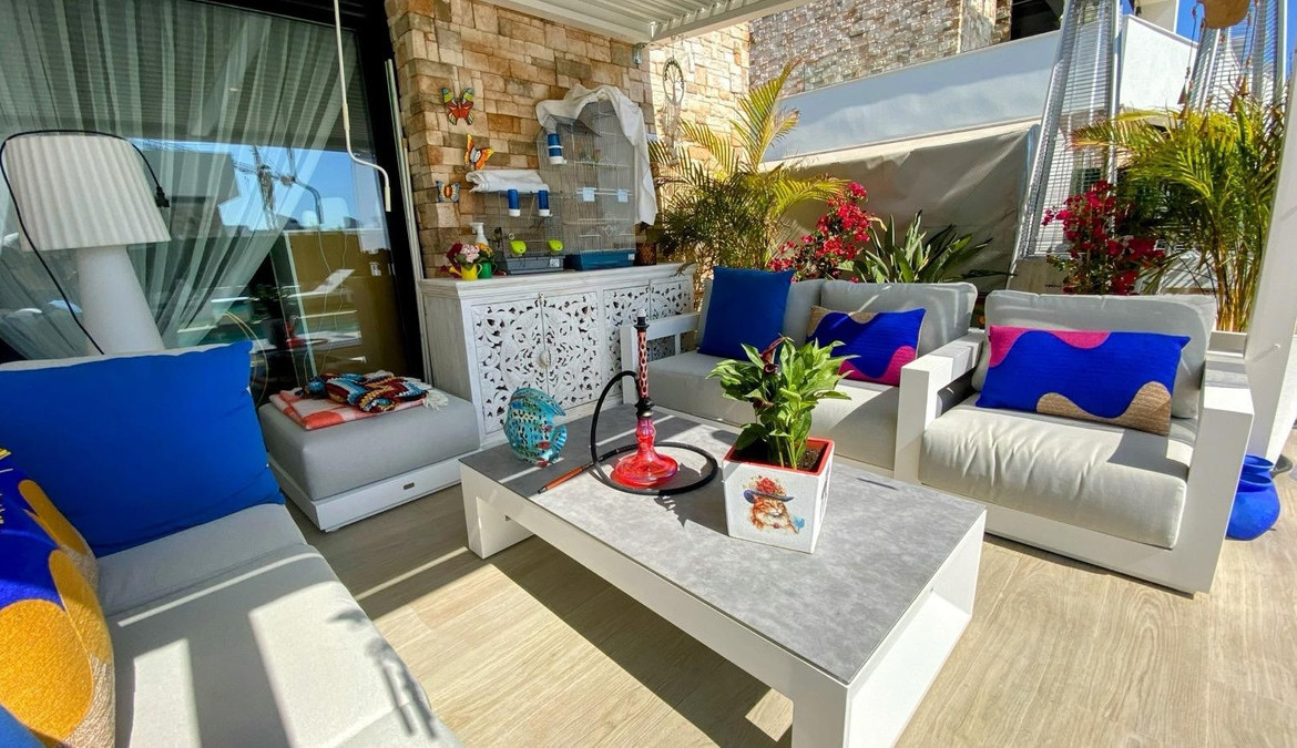 On the upper floor, a spacious solarium becomes the perfect place to disconnect, sunbathe, or enjoy dinners at sunset, all while admiring the breathtaking combination of sea and mountain views.