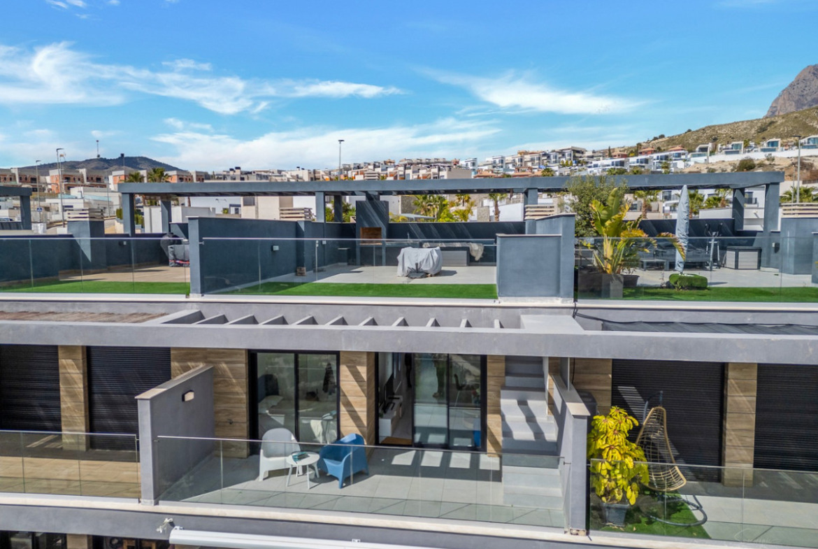 Nestled in the prestigious Balcón de Finestrat area, this elegant duplex offers a perfect blend of contemporary design, a south-facing orientation, and breathtaking panoramic views of the Mediterranean Sea and Benidorm’s iconic skyline.