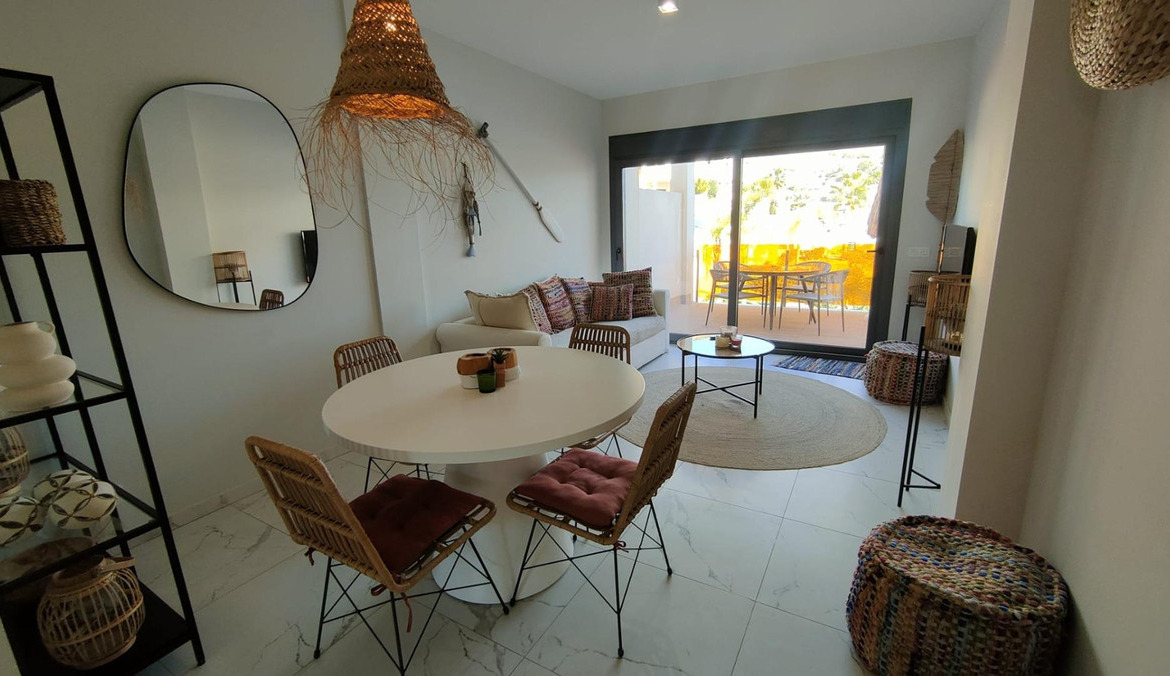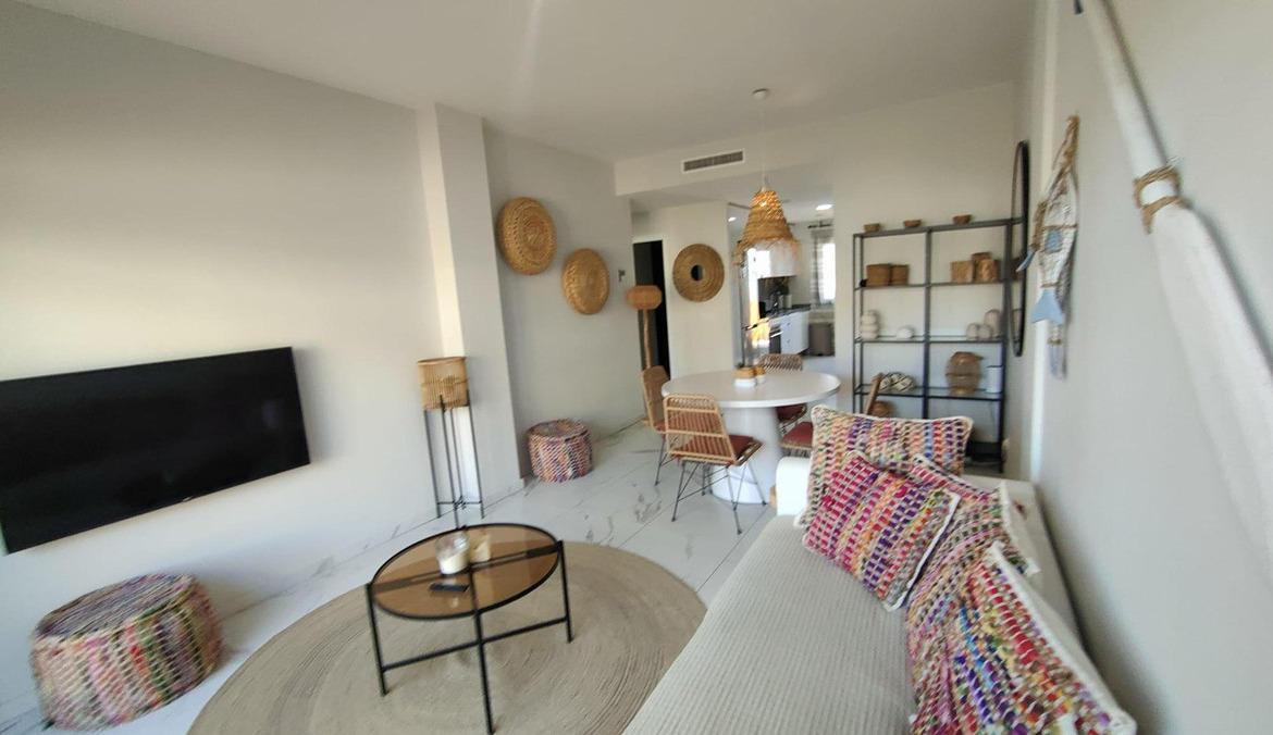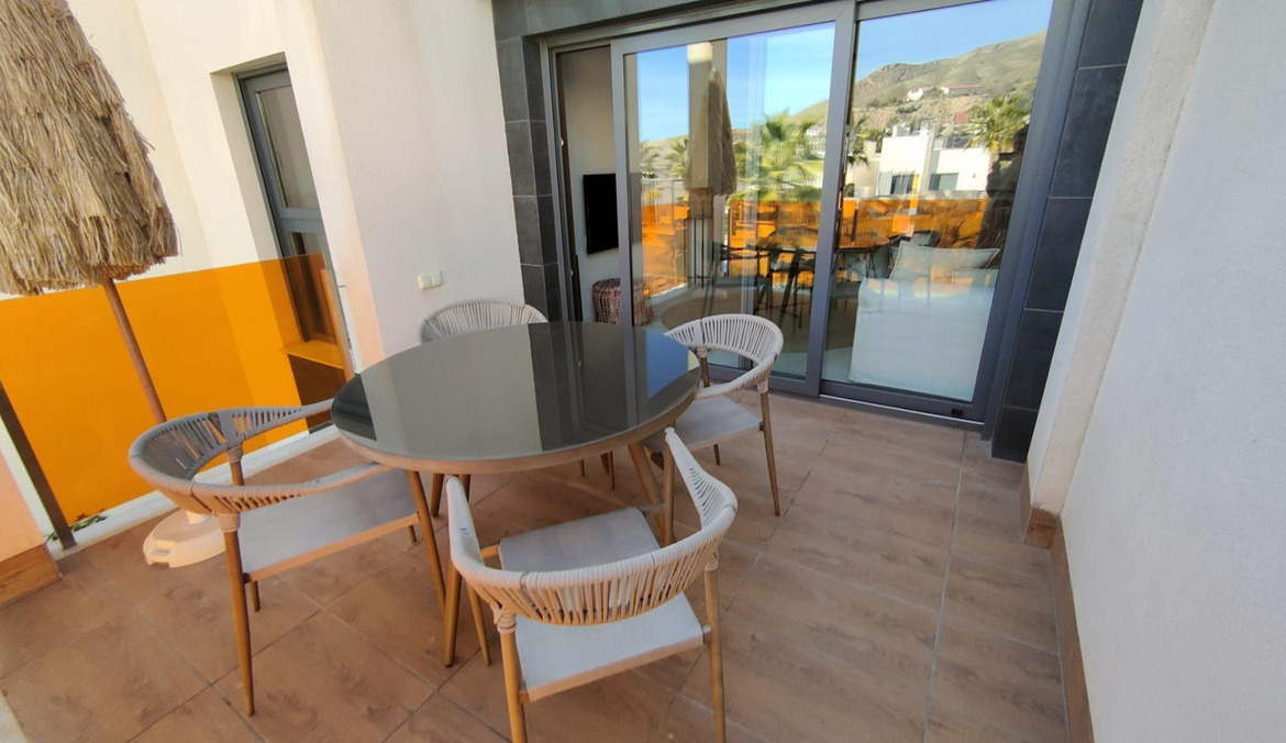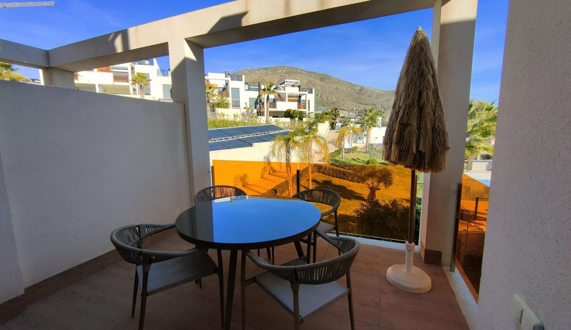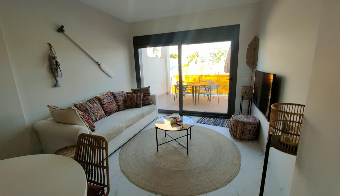 ✨ Upper floor bungalow with solarium and sea views in Alegría Village Resort – Finestrat ✨We present this beautiful upper floor bungalow, located in the exclusive Alegría Village Resort, one of the most complete and well-kept residential areas in Finestrat, with fantastic sea views and an environment designed to enjoy well-being and the Mediterranean lifestyle.The property has 2 bedrooms and 2 bathrooms, offering comfort and functionality. It has a large private solarium, ideal for relaxing, with a built-in barbecue, seating area, and open views. It comes fully equipped, including furniture and appliances, as well as solar panels for hot water, underfloor heating in the bathrooms, and electric blinds.The resort's communal areas are exceptional and designed for the whole family:???? Oriental garden with palm trees and fruit trees???? 25 x 12 m infinity pool???? 8 x 8 m Jacuzzi???? Pool bar???? Finnish sauna????️ Gym???? Children's playground and poolAll this in a privileged location, close to all amenities, with quick access to the motorway to Alicante, close to the Puig Campana golf course and just a few minutes from the beaches.✨ An ideal property for living, enjoying holidays or investing in one of the best areas of the Costa Blanca.