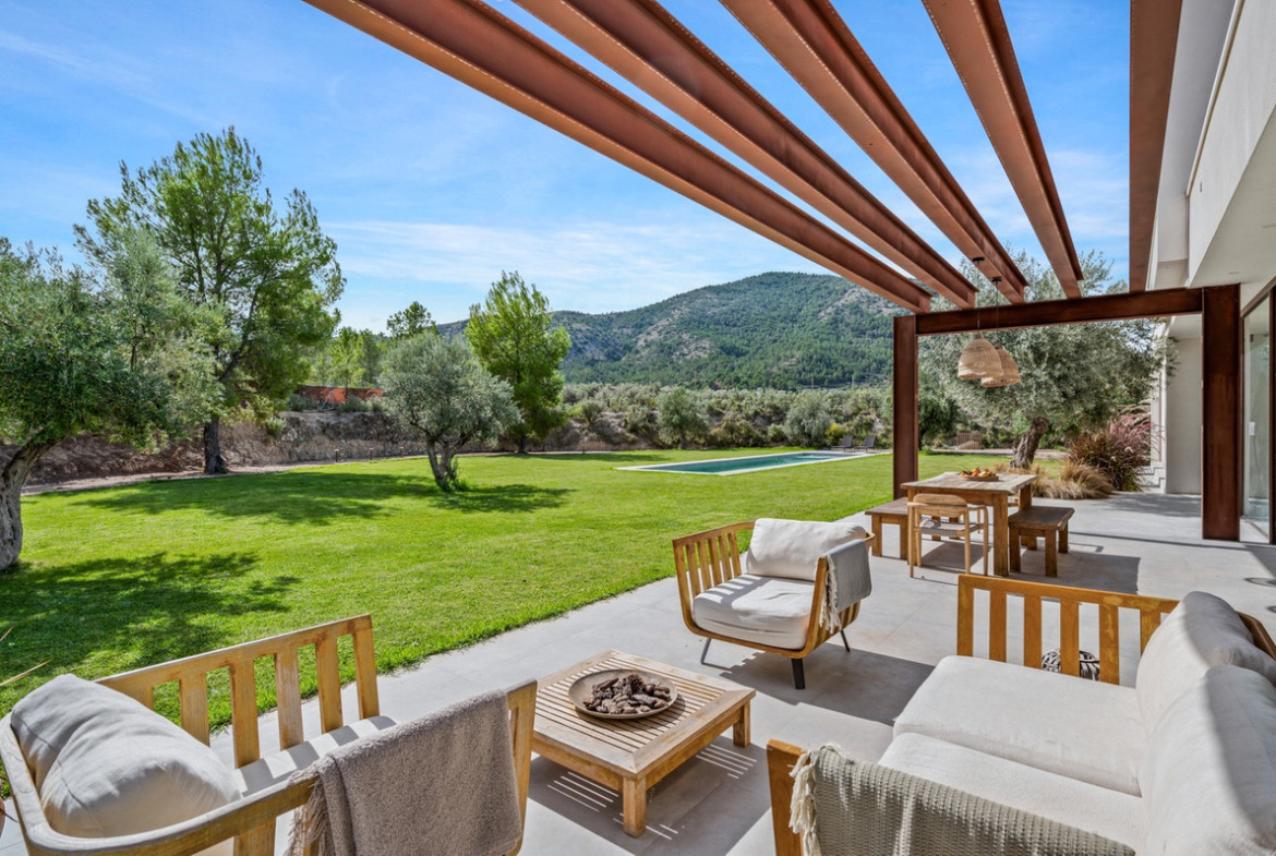 This Passive-House in Finestrat is one of those places. It’s not just modern architecture — it’s a way of living: sustainable, forward-thinking, peaceful.230 m² built under the highest biopassive and energy-efficient standards, capturing every ray of sunlight, every breeze, every drop of rain… Everything flows in harmony with 10,000 m² of nature, olive trees and fruit orchards around it. Here, the outdoors doesn’t start at the front door — it starts long before.