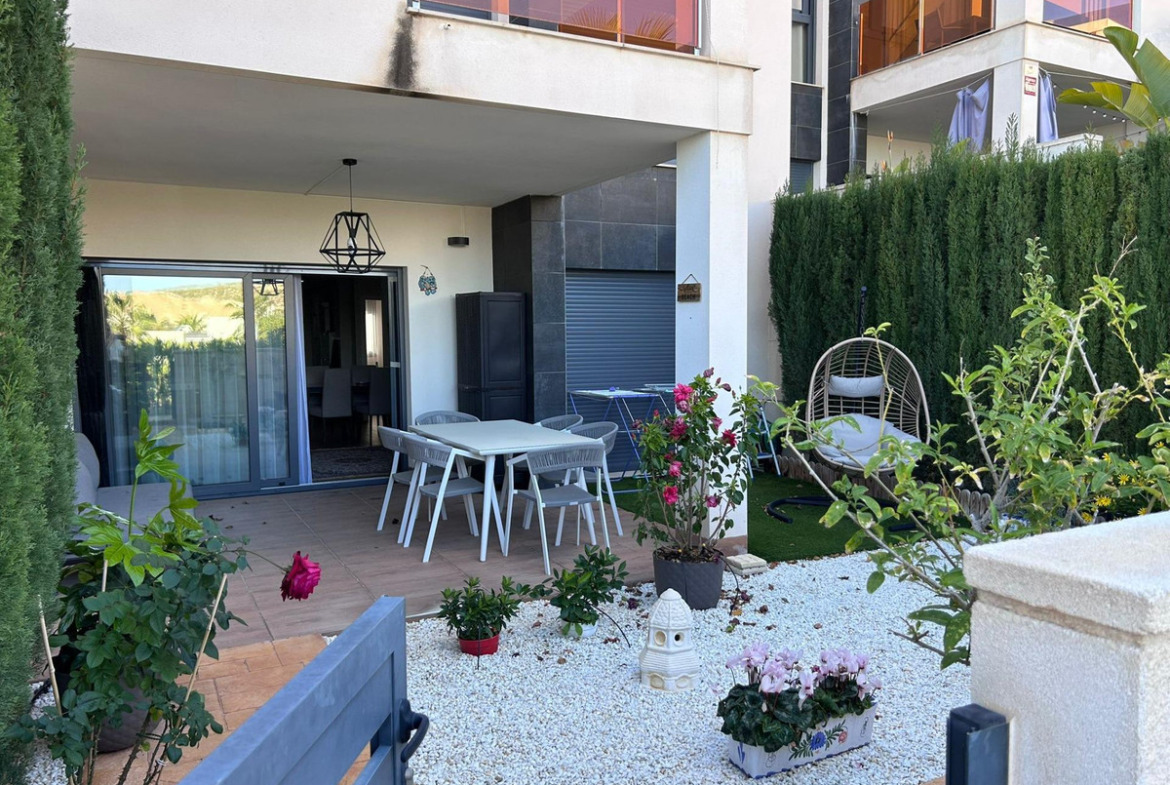Discover this spectacular furnished ground floor in the exclusive and modern Alegría Village residential complex, a home where comfort, design and views come together to offer you an unbeatable quality of life ☀️What makes this property unique:???? Alarm system????️ 3 spacious bedrooms with built-in wardrobes???? 2 bathrooms, one with underfloor heating for extra comfort???? 2 huge terraces with garden, perfect to enjoy all year round and with panoramic views???? BBQ area ideal for gatherings with family and friends????️ Bright living room with direct access to the terrace????️ Fully equipped kitchen❄️ Air conditioning and individual heating???? Garage space included☀️ South-facing, natural light all day long???? From its terraces you can enjoy stunning open views of the sea, Benidorm and the coastline, creating the perfect atmosphere both for living and for relaxing on holiday.The Alegría Village residential complex offers:???? Large communal swimming pool????♂️ Sauna???? Children’s playground???? Gated, secure and very well-maintained complex???? Unbeatable location:Just a few minutes from Benidorm, La Marina shopping centre, supermarkets, restaurants and all necessary services.Close to international schools and colleges, ideal for families.???? Ideal as a permanent residence, second home or investment.Can you imagine living here?Contact us for more information or to arrange a viewing. This bungalow is even more impressive in person! ????
