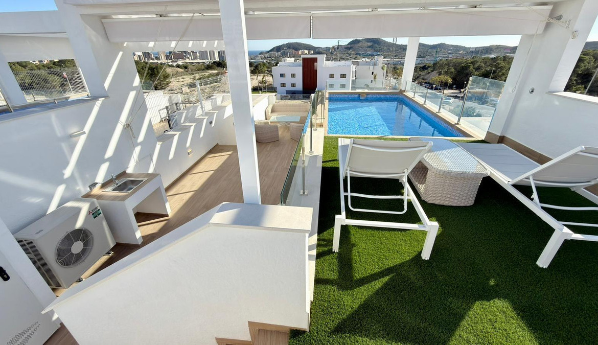 For sale Bungalow. Location Finestrat (ALICANTE). Total area 122.00 m2. Number of rooms – 2. Number of bedrooms 2. Number of bathrooms 2. Year of construction 2024. Distance to the sea 3.00 km.