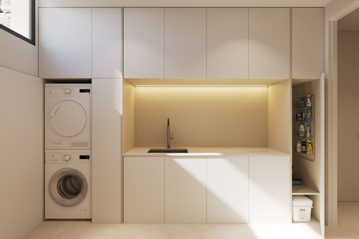 The villas offer 4 bedrooms and 3 bathrooms, with a functional layout that provides privacy and comfort for the whole family. The upper floor hosts the main sleeping area with bright bedrooms and access to private terraces, while the ground floor integrates the social areas along with an additional bedroom that offers flexibility for guests or use as an office.